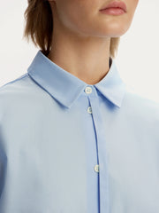 يُعتبر هذا القميص قطعة أساسية معاصرة في خزانة الملابس وهو مصنوع من القطن العضوي ويتميز بلمسة لامعة عذبة وقد صُنع في المصنع الإيطالي الشهير ألبيني. يأتي بتصميم عملي رائع وتصميم طويل يمكن تنسيقه بمفرده أو فوق التي شيرتات والبلوزات بدون أكمام.