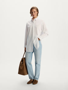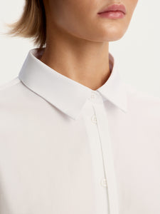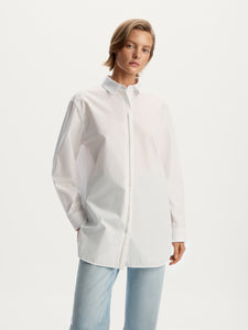 يُعتبر هذا القميص قطعة أساسية معاصرة في خزانة الملابس وهو مصنوع من القطن العضوي ويتميز بلمسة لامعة عذبة وقد صُنع في المصنع الإيطالي الشهير ألبيني. يأتي بتصميم عملي رائع وتصميم طويل يمكن تنسيقه بمفرده أو فوق التي شيرتات والبلوزات بدون أكمام.