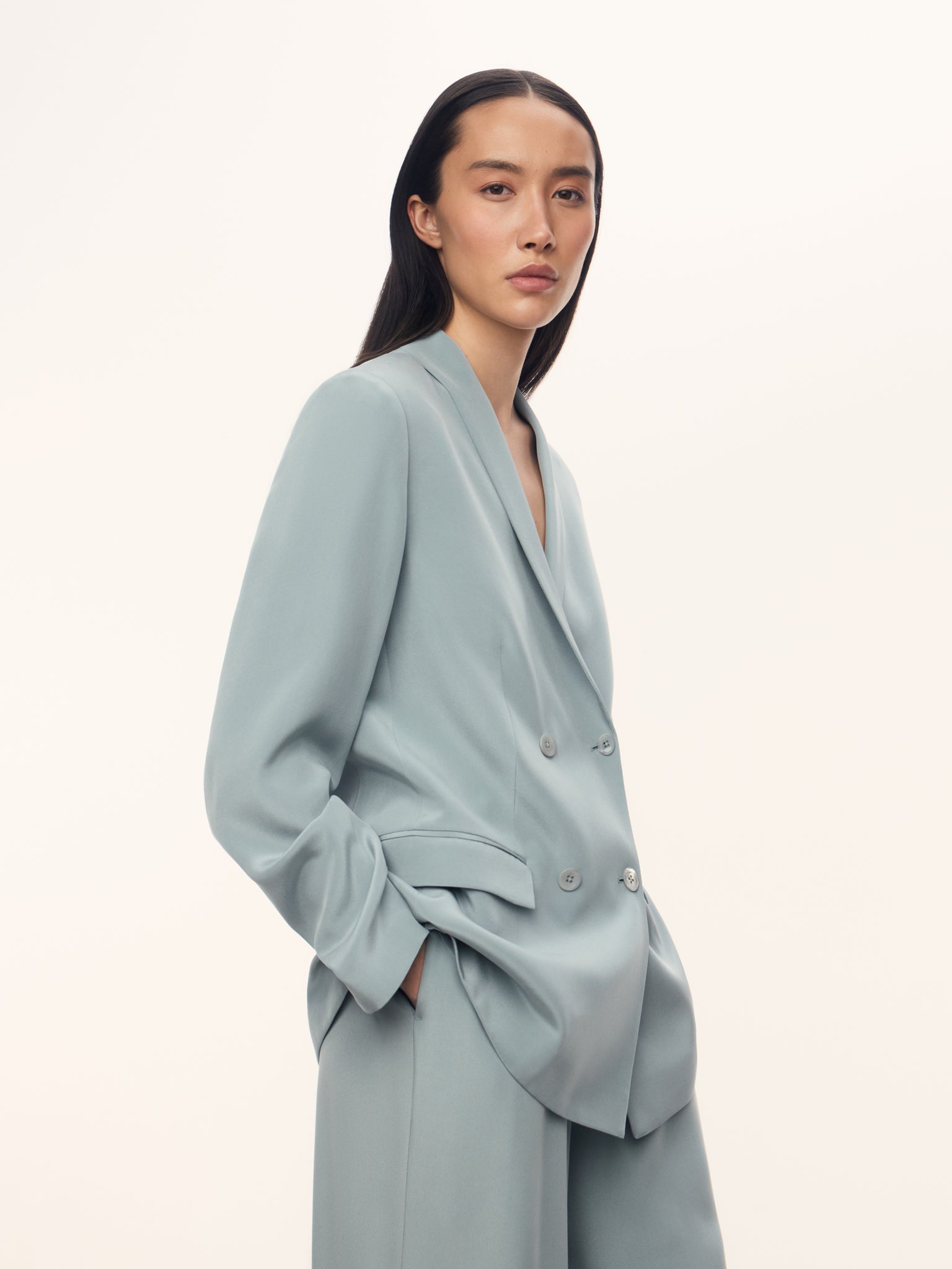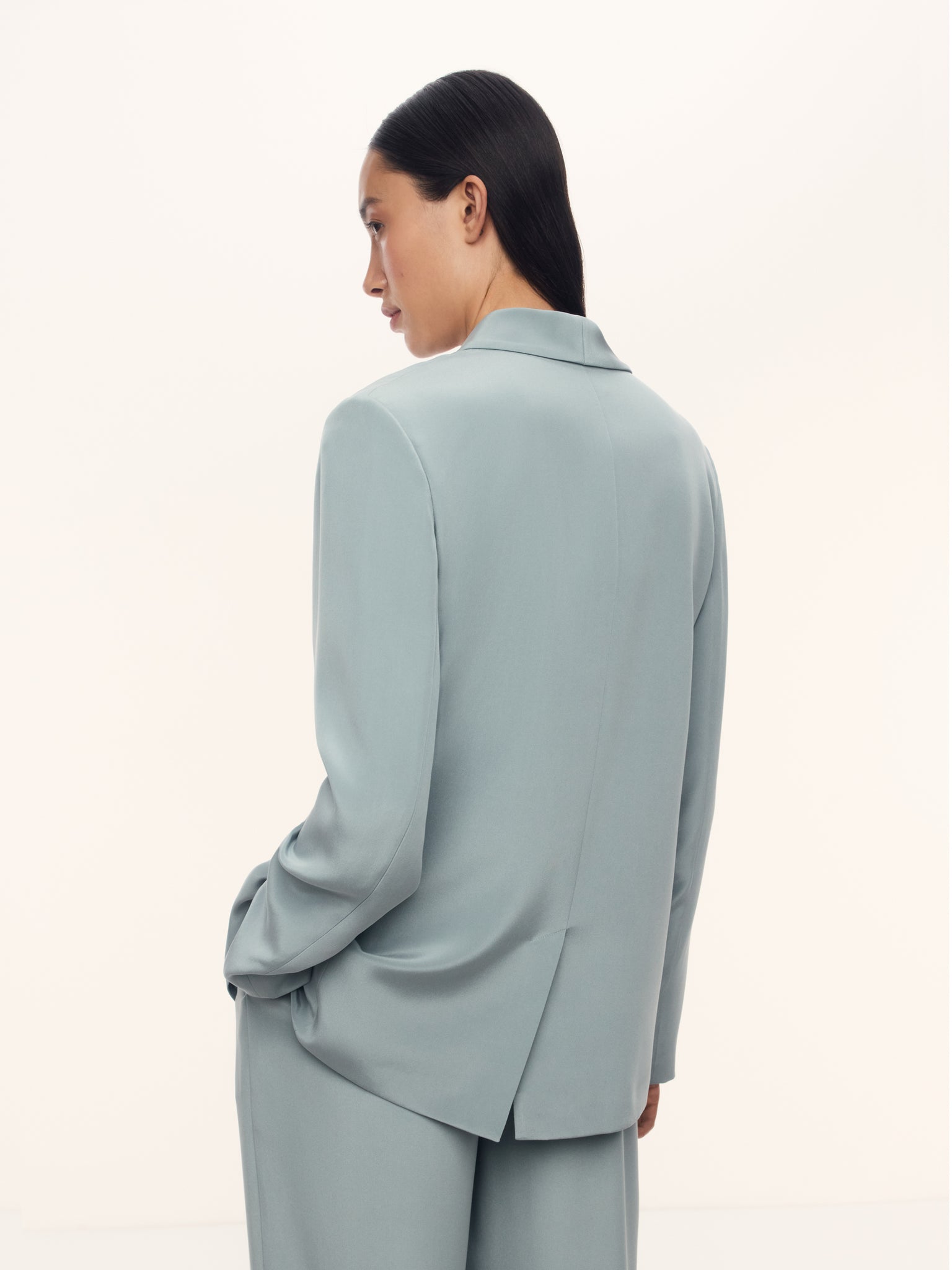 صُنع هذا البليزر بنسبة 100% من حرير ميلبري بوزن 30 موميه لقوام غير معدني وناعم على البشرة. تُعتبر خيارًا مثاليًا للإطلالات النهارية والمسائية، إذ تأتي بقماش حريري وقصة أنيقة مثالية للمناسبات المتنوعة. تتميز ببطانات أكتاف أنيقة وتزدان بأزرار مصنوعة من قماش عازل طبيعي. تأتي ببطانة جيدة التهوية وخفيفة الوزن من مزيج الحرير والفيسكوز لقوام محدد يحافظ على شكله مع مرور الوقت.