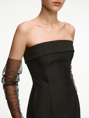 صُنع هذا الفستان من صوف المارينو الأسترالي وحرير ميلبري للتنعم بقوام لامع وكثيف ومحدد الشكل. يأتي بخامة كثيفة ودعامة مرنة مزودة بأسلاك على طول الدرزات لتعزيز الطابع الانسيابي. يأتي بشريط سيليكون على طول الحواف للتنعم بالراحة المطلقة. يأتي ببطانة كاملة من متعدد الفيسكوز والحرير لمتانة تدوم طويلاً.