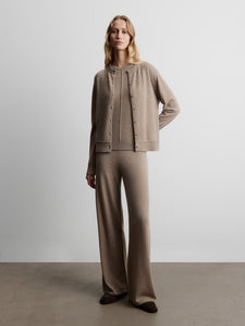 صُنع هذا الكارديغان من الكشمير الناعم ويأتي بدرزات متقنة بعناية. يتميز بقماش محبوك ناعم لتعزيز الدفء وبقوام خفيف الوزن ومناسب للطقس البارد. يمكن تنسيقه بأكثر من طريقة ويتماشى مع تصاميم الدنيم والفساتين الحريرية والتنانير الضيقة على حد سواء. يمكن تنسيقه مع البلوزة والبنطال المطابقين من الكشمير. يُنصح باستخدام ماكينة مخصصة لإزالة الوبر.