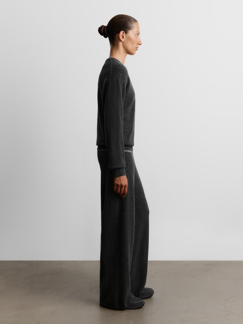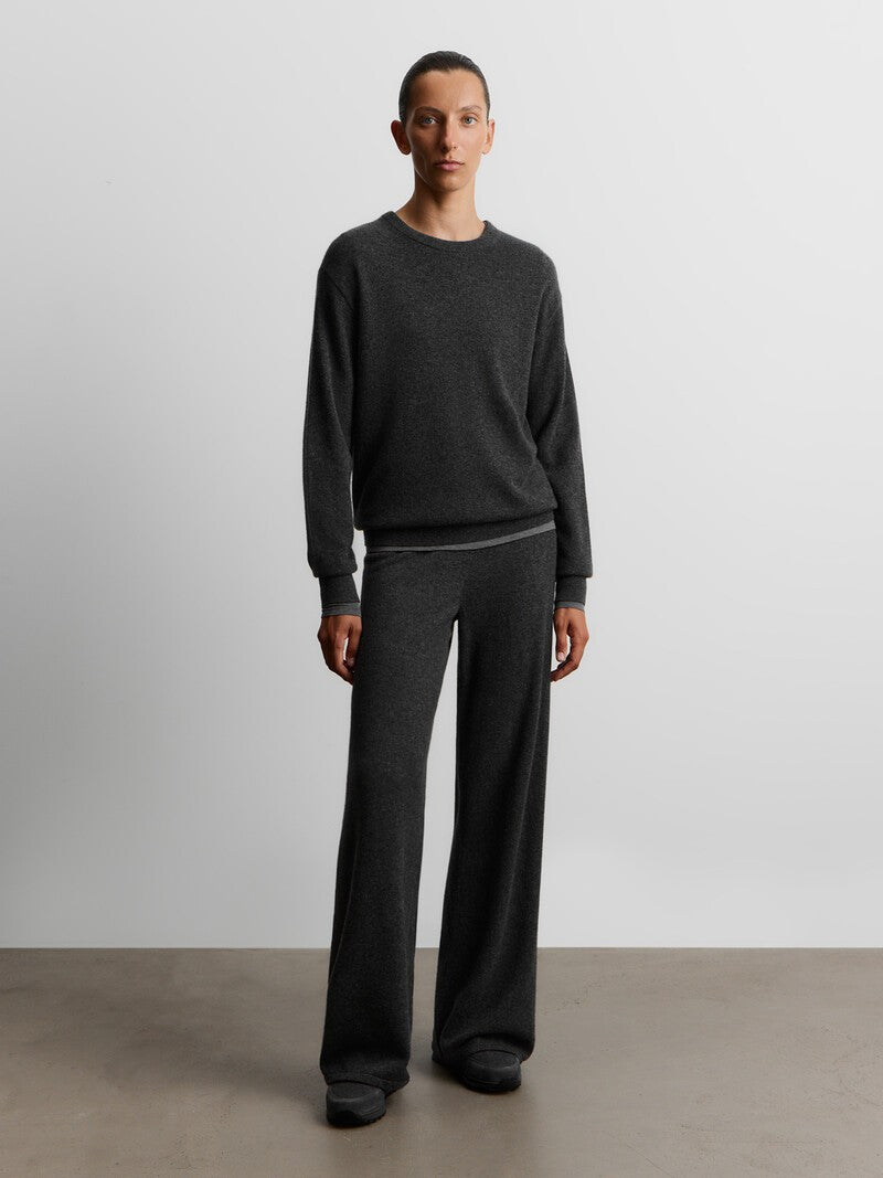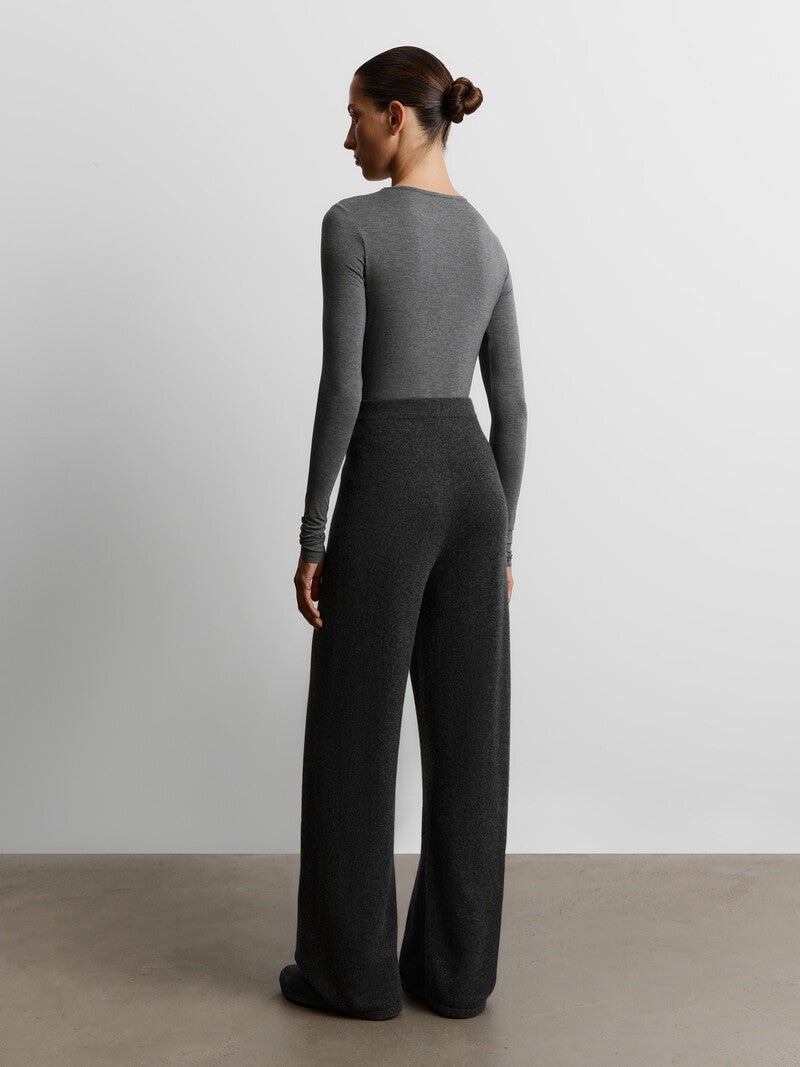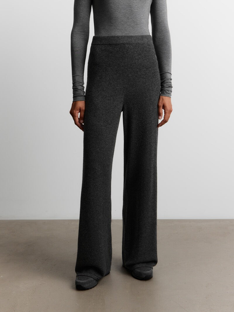 - Wide-leg trousers in single-ply cashmere — soft, warm, and lightweight