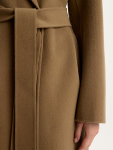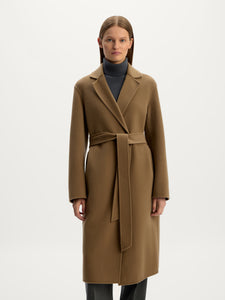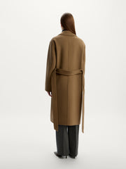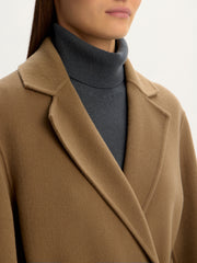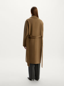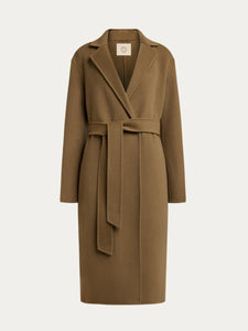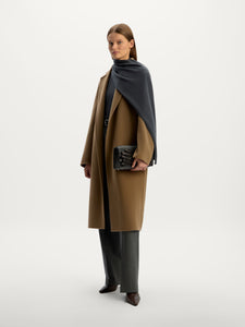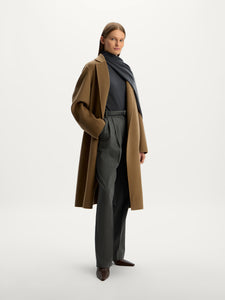 صُنع هذا المعطف من صوف المارينو المريح وقد صُمم بقصة مريحة وأكمام كيمونو واسعة لسهولة تنسيق الملابس المحبوكة السميكة أسفله. يتميز بتصميم مزدوج الجوانب، لارتدائه بدون حزام لإظهار جزئه الداخلي.