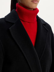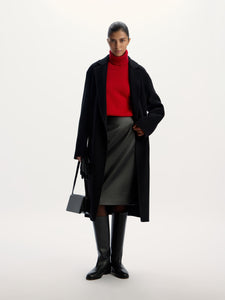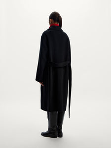 صُنع هذا المعطف من صوف المارينو المريح وقد صُمم بقصة مريحة وأكمام كيمونو واسعة لسهولة تنسيق الملابس المحبوكة السميكة أسفله. يتميز بتصميم مزدوج الجوانب، لارتدائه بدون حزام لإظهار جزئه الداخلي.