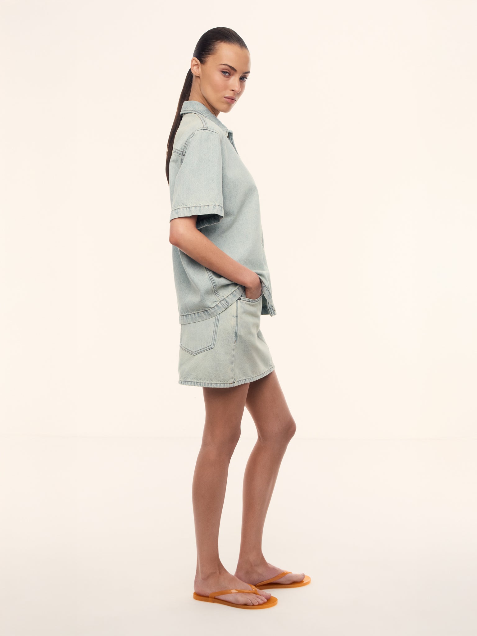 صُممت بخصر منخفض للإطلالات الصيفية البارزة وتأتي بدرزات أمامية منحنية كاحتفاء لتصاميم الدنيم. صُنعت من الدنيم بوزن 12.5 أونصة وتتميز بلمسة معتقة كلاسيكية ولون غني. يتميز بتقنية ون بوكس، إذ يتم غسل خيوط الغزل وصبغها في مرة واحدة، ما يحد من استهلاك المياه واستخدام المواد الكيميائية بنسبة 50-90%. تأتي بسحاب للإغلاق ورقعة من الجلد الطبيعي.
