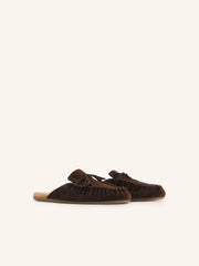 3. The flexible rubber sole provides grip, while moccasin stitching helps maintain the shape
