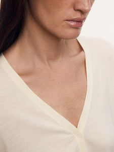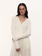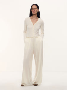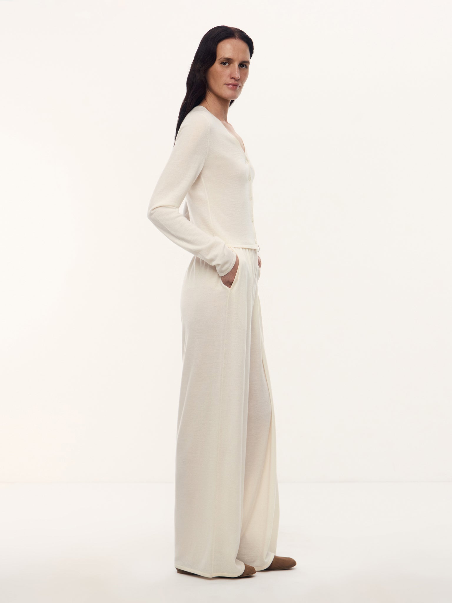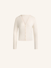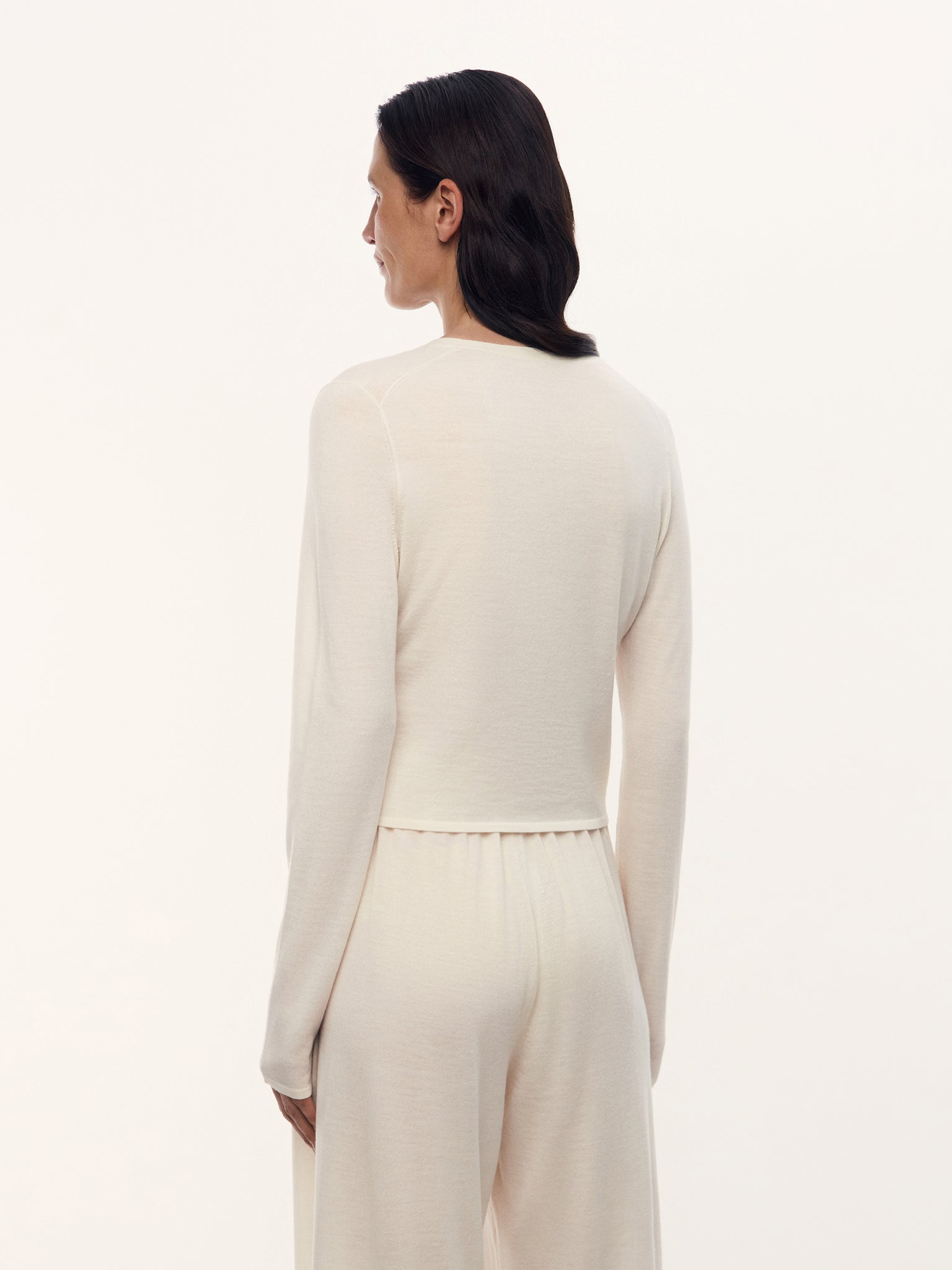 حُبك هذا الكارديغان من صوف المارينو الناعم والحرير الطبيعي الذي ينسدل بشكل رائع ويلفت الأنظار. يأتي بقصة مريحة وجيدة التهوية، ما يسهل تنسيقه فوق البلوزة أو بمفرده. يُغلق بأزرار من عرق اللؤلؤ.