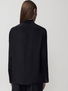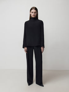 تُعتبر هذه البلوزة إضافة جمالية أنيقة إلى خزانة ملابسك وهي مصنوعة من مزيج الشيفون والفيسكوز والحرير وتتميز بلمسة لامعة عذبة. تأتي بدرزات عند المنتصف لتعزز طابعها الجمالي المينيمالي، أما حوافها المدروزة فتشدد على قوامها جيد التهوية.