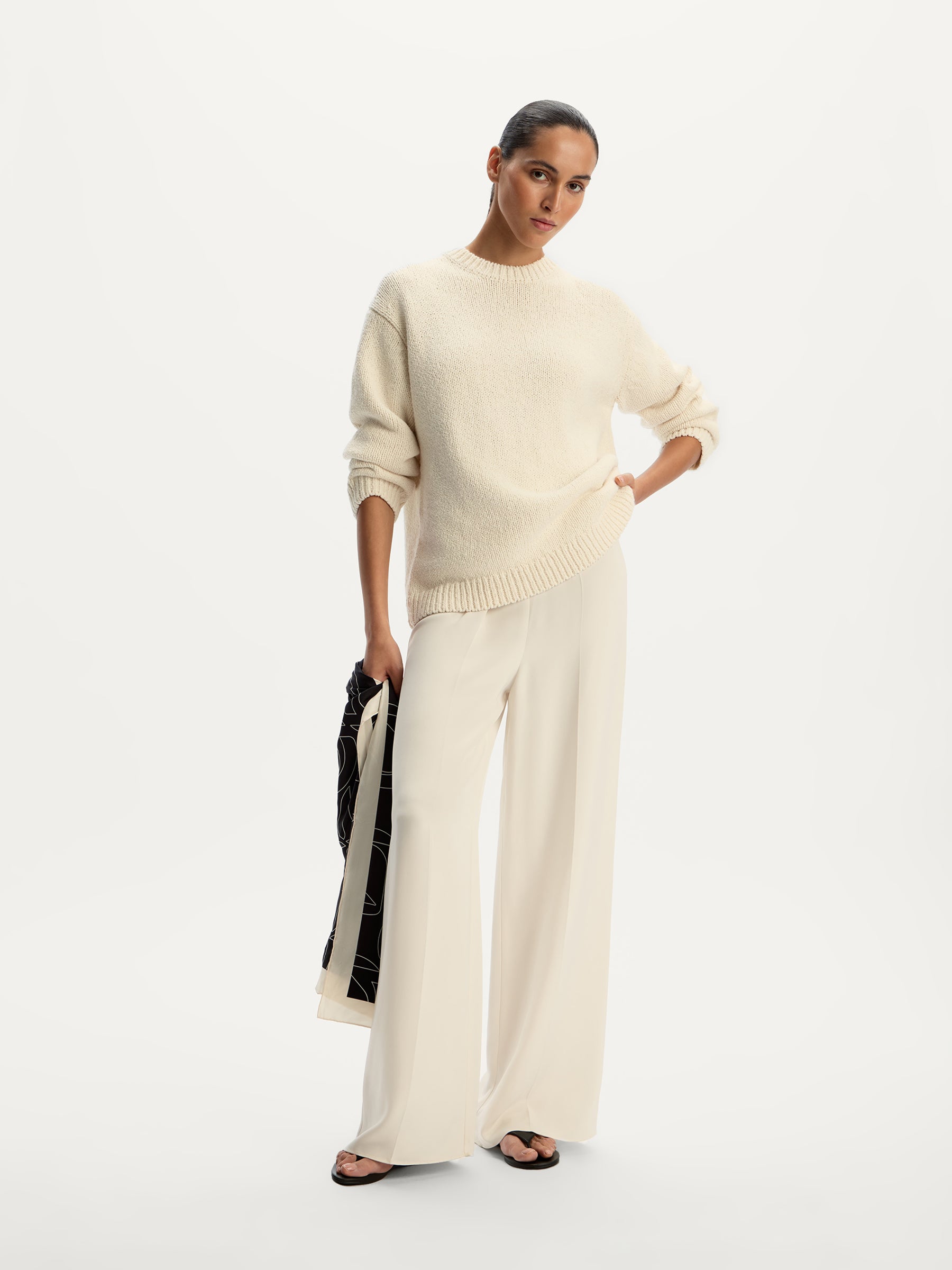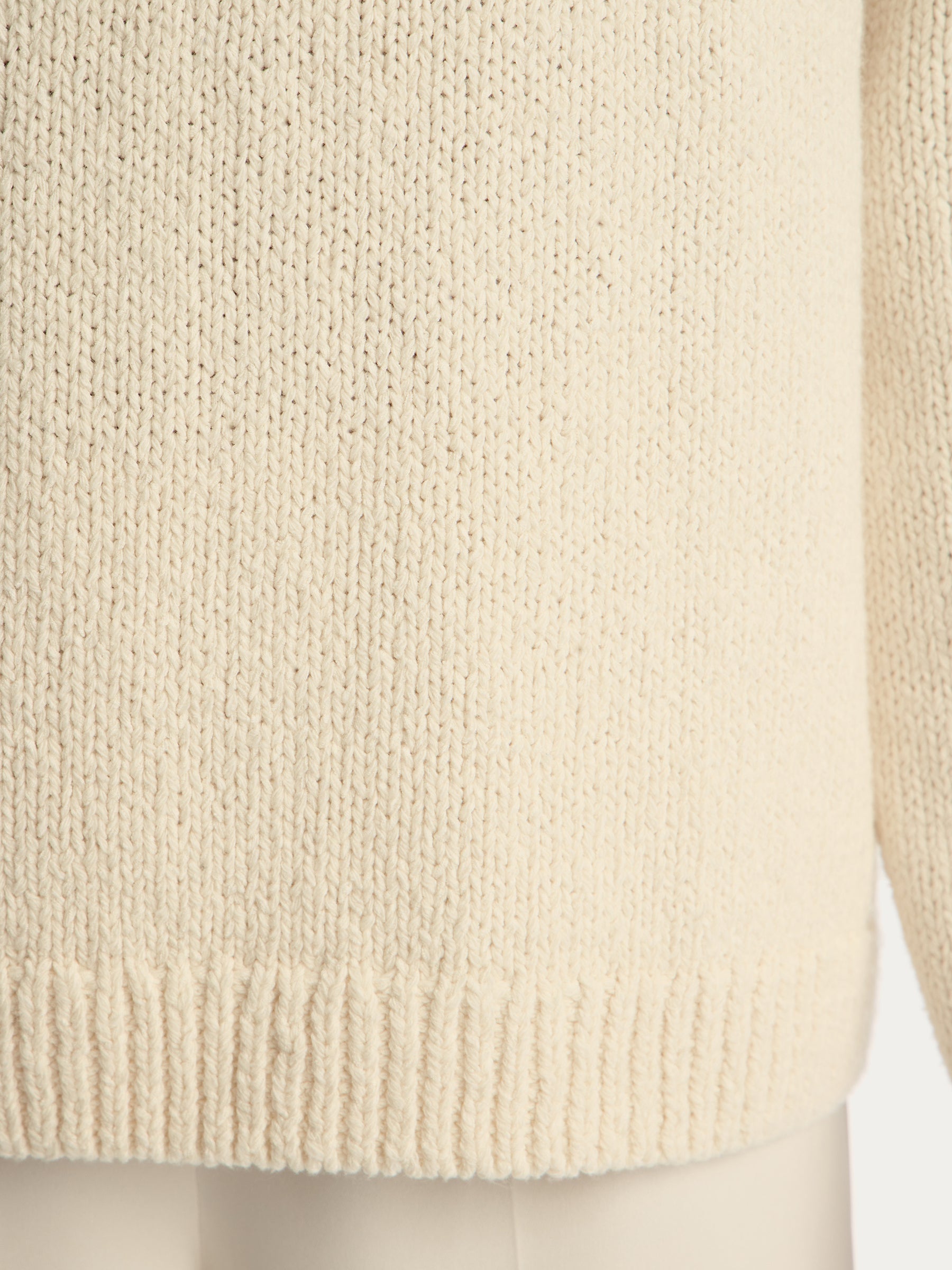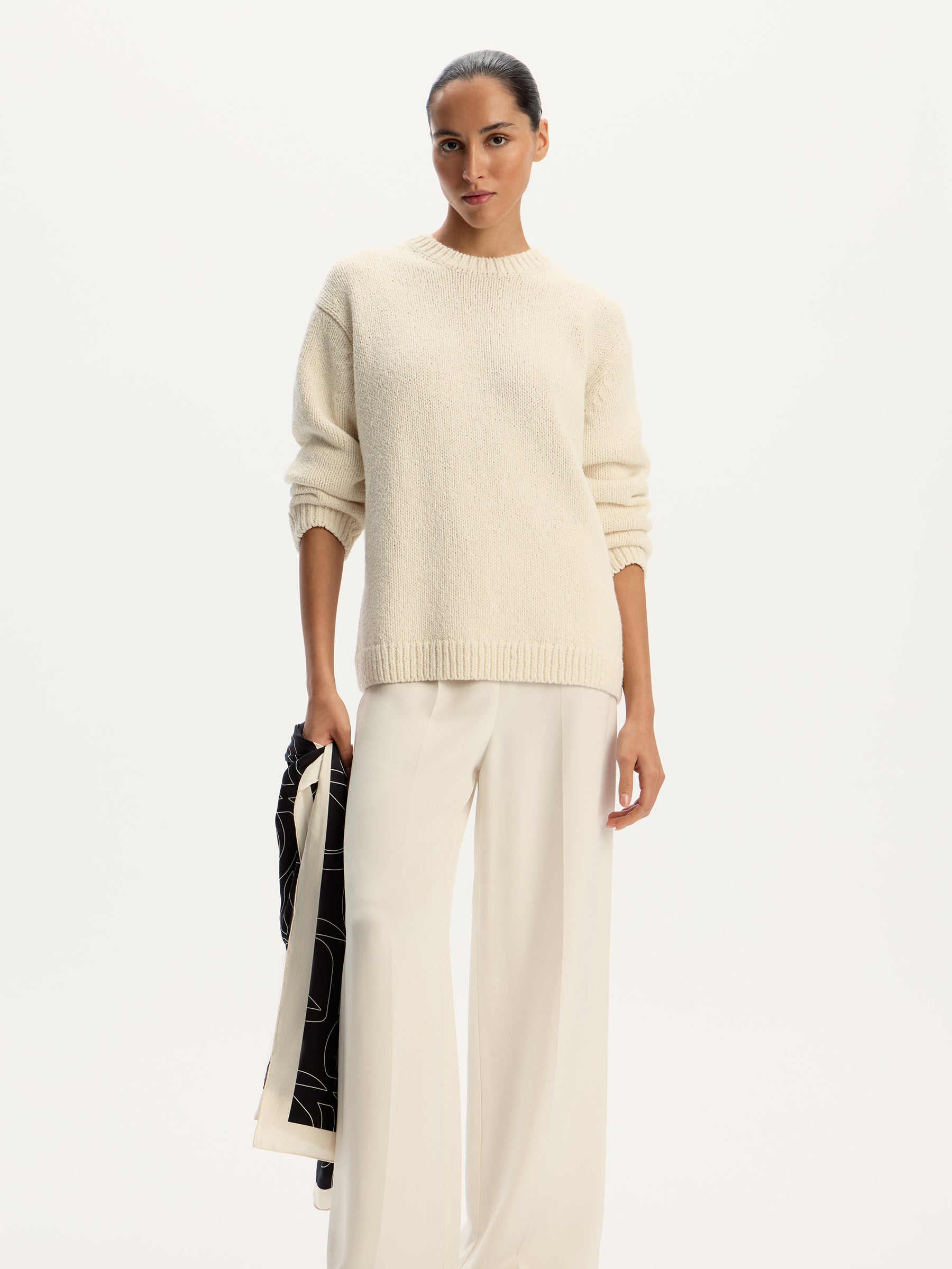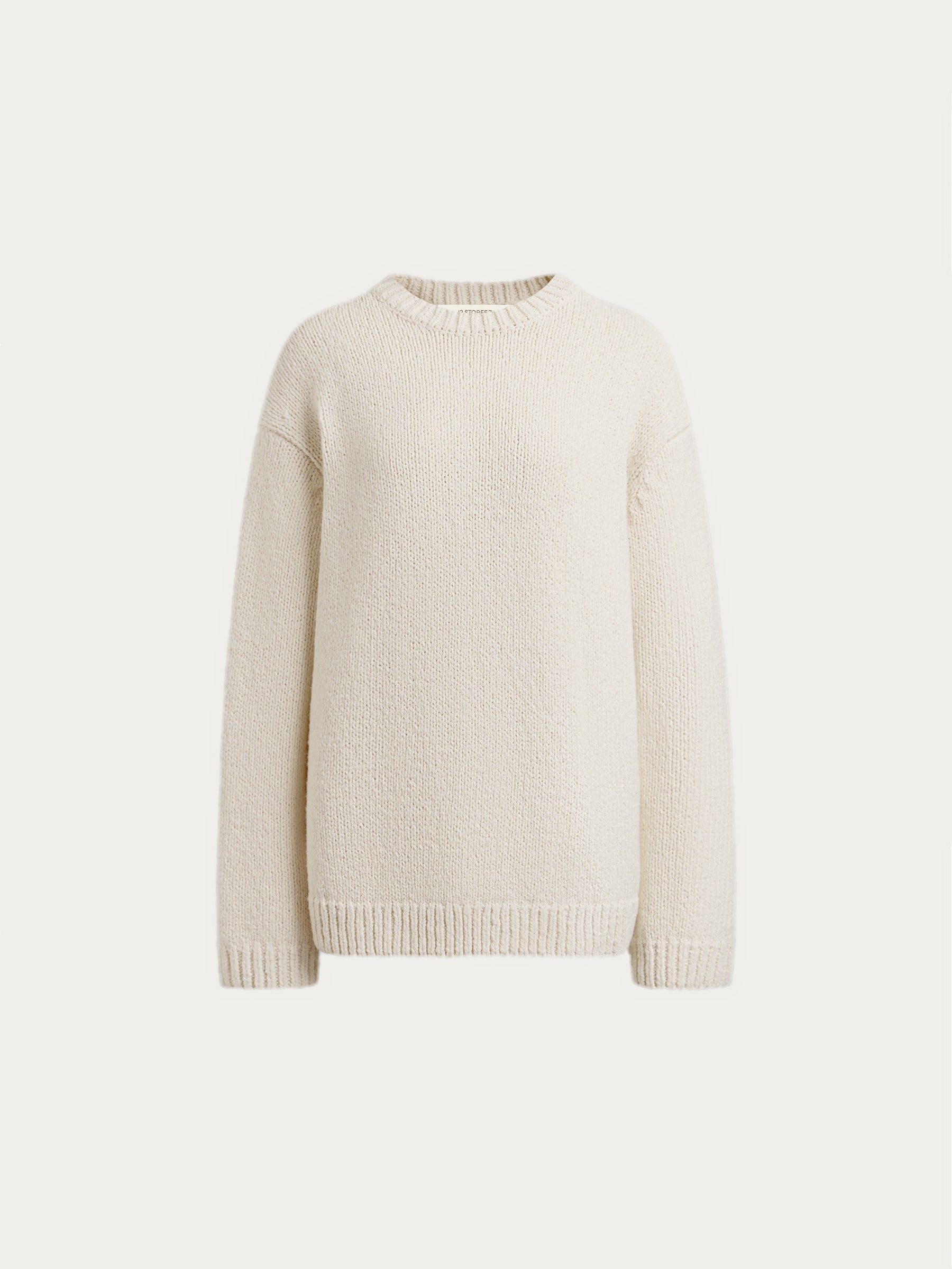 تُعتبر هذه الكنزة قطعة أساسية مريحة وهي مصنوعة من خيوط غزل متنوعة من حيث الكثافة والألوان لتعزيز قوامها الخفيف. صُممت بقصة مستقيمة فضفاضة وأكتاف منخفضة وحواف مضلعة لسهولة التنسيق.