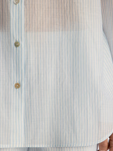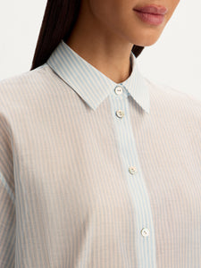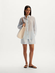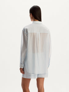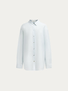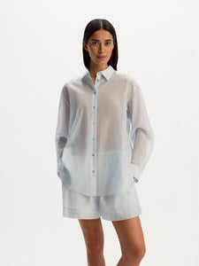 Your go-to for warm days, this shirt is crafted from a tactile blend of cotton and silk, offering breathable comfort with a subtle sheen. Designed in an oversized silhouette with dropped shoulders, it features a back pleat for added volume. Finished with mother-of-pearl buttons.