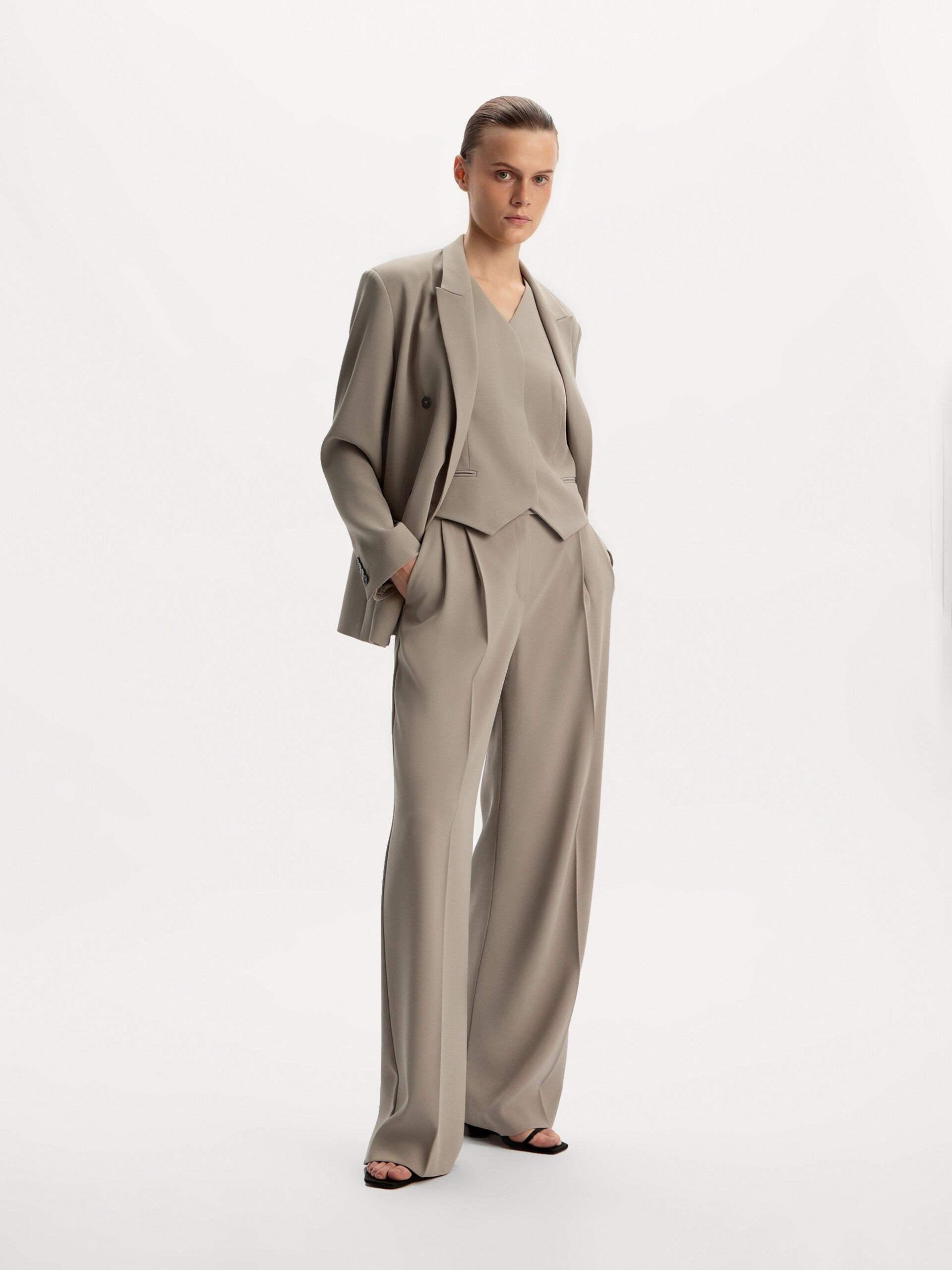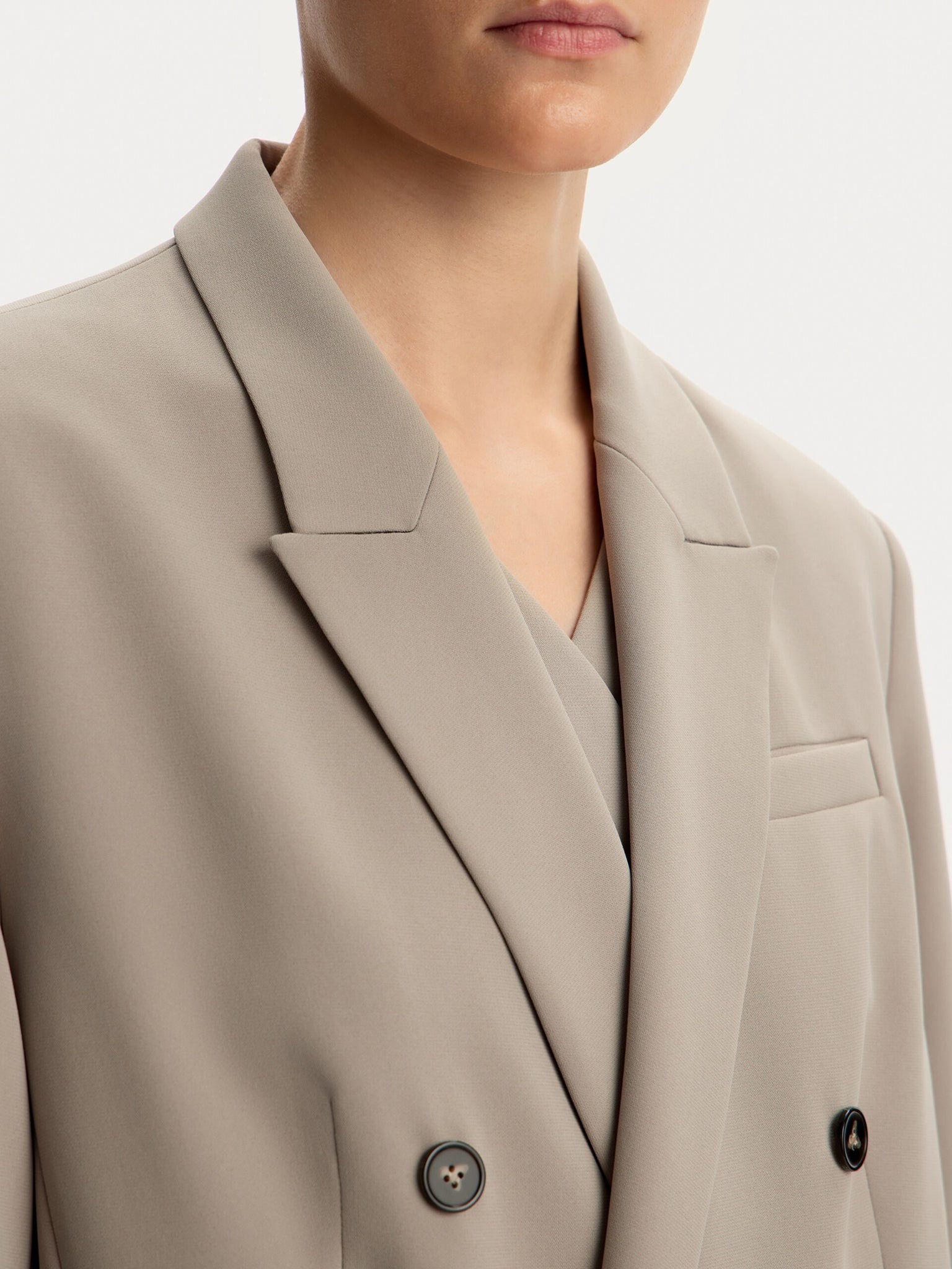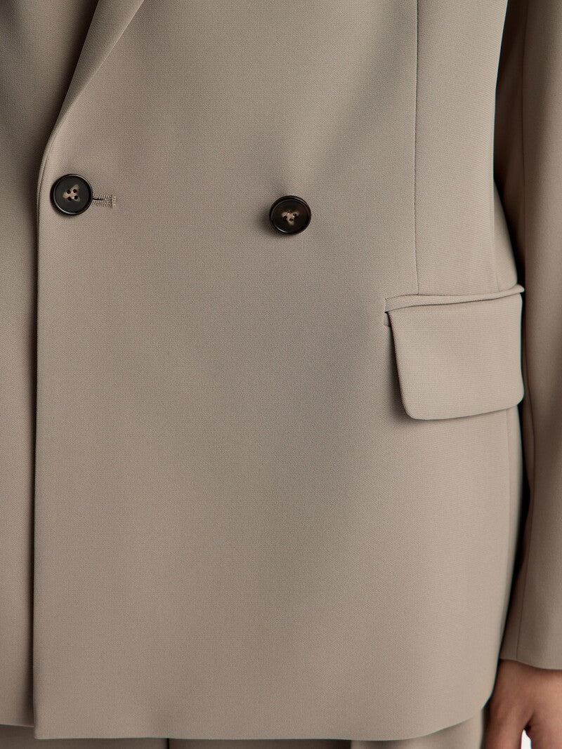 استُوحي هذا البليزر من البدلات الرسمية خلال الثمانينيات وقد صُمم بقصة مريحة ويأتي بصفين من الأزرار وأكتاف محددة الشكل. صُنع من الكريب غير اللامع وخفيف الوزن للتنعم بالراحة لساعات طويلة. يمكن تنسيقه لإطلالات العمل وغيرها من المناسبات ويتماشى للغاية مع الفيست أو البنطال أو الشورت المطابق لدى 12STOREEZ.