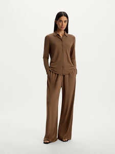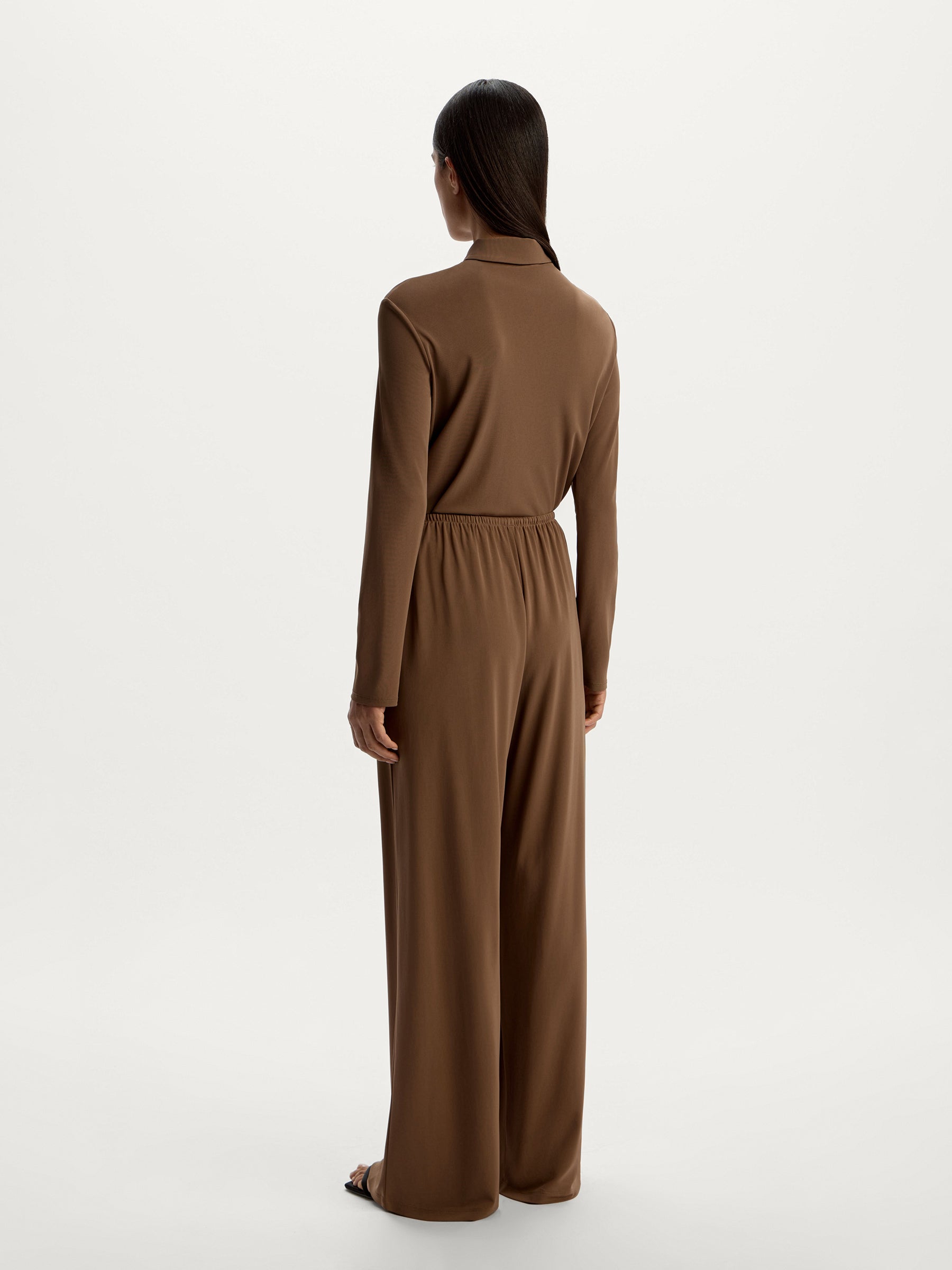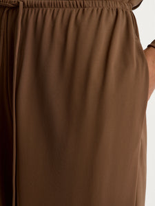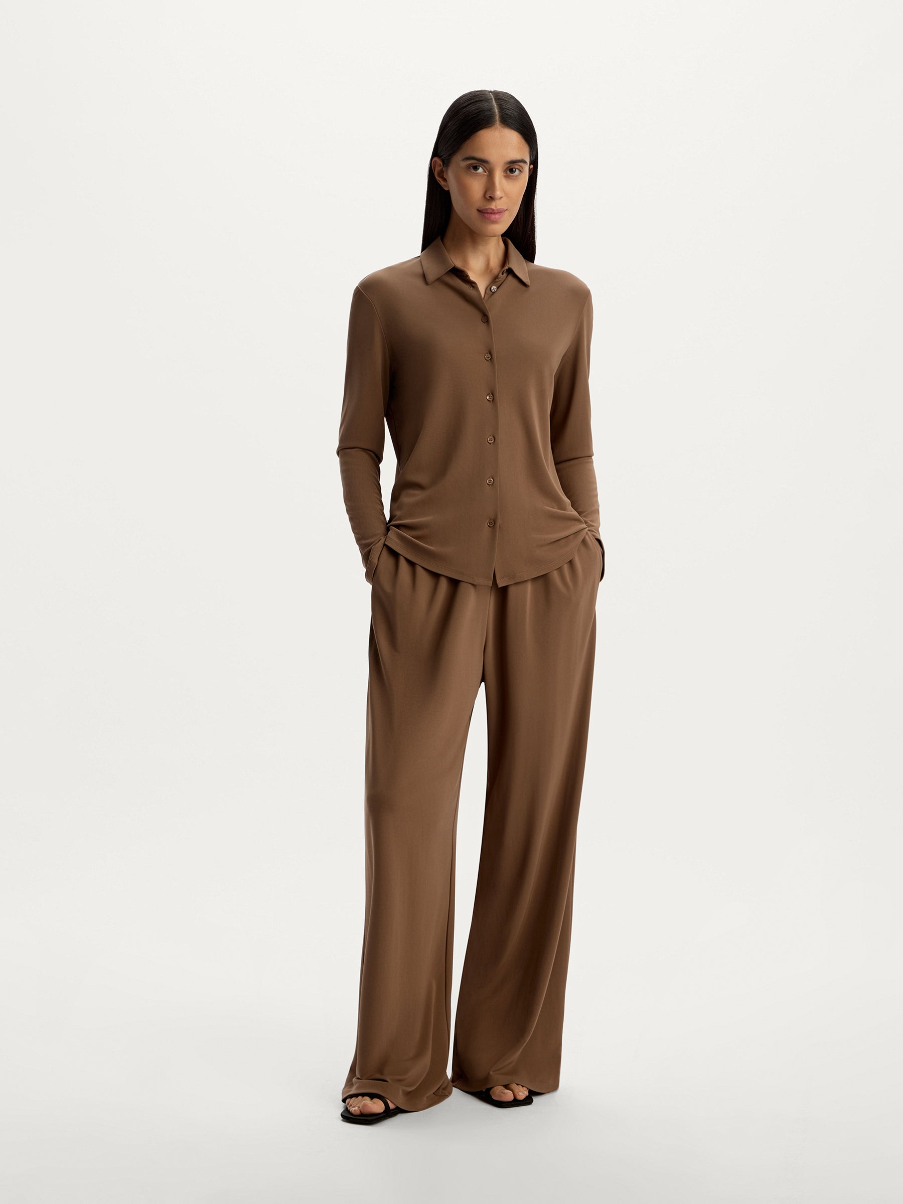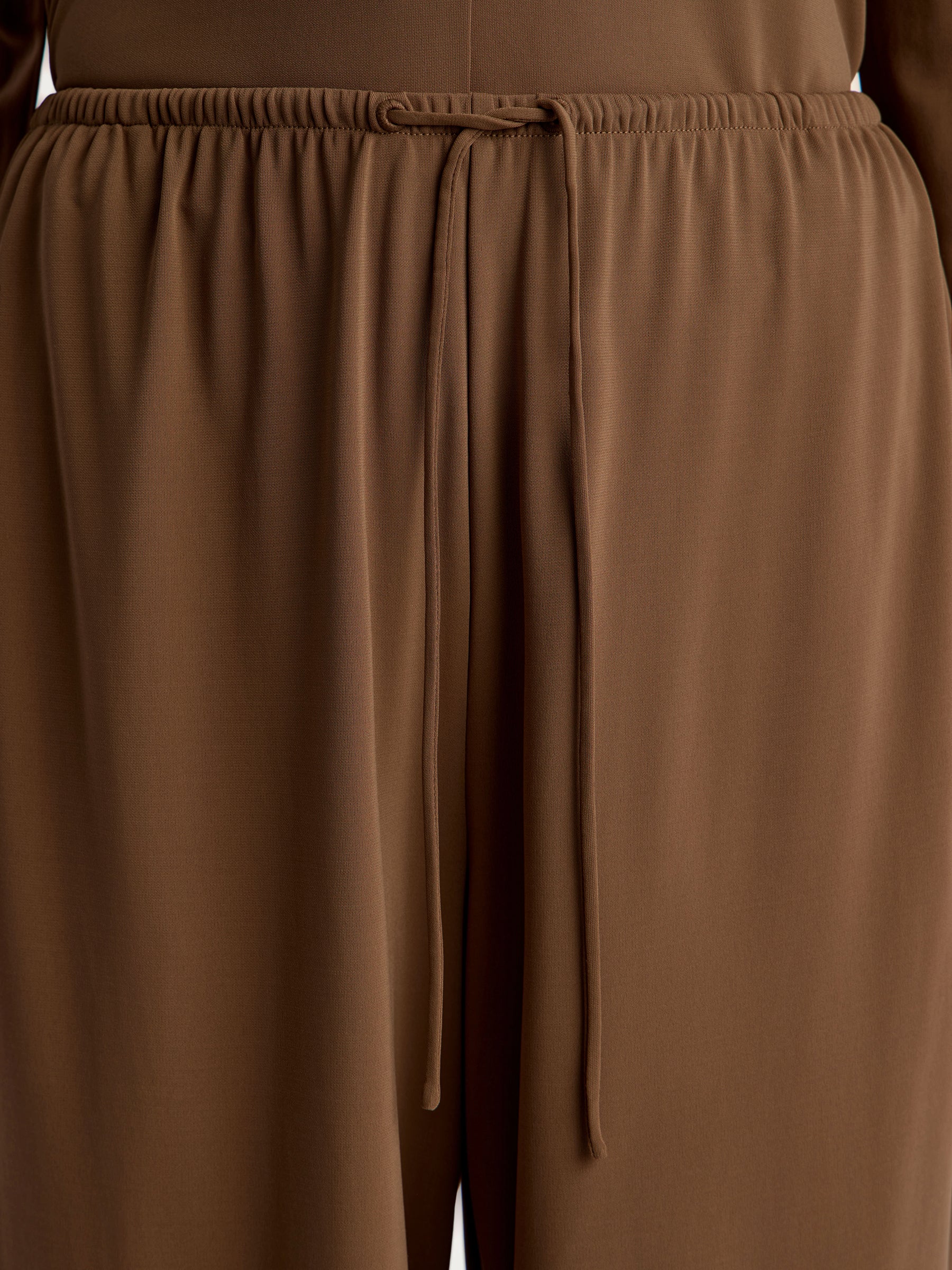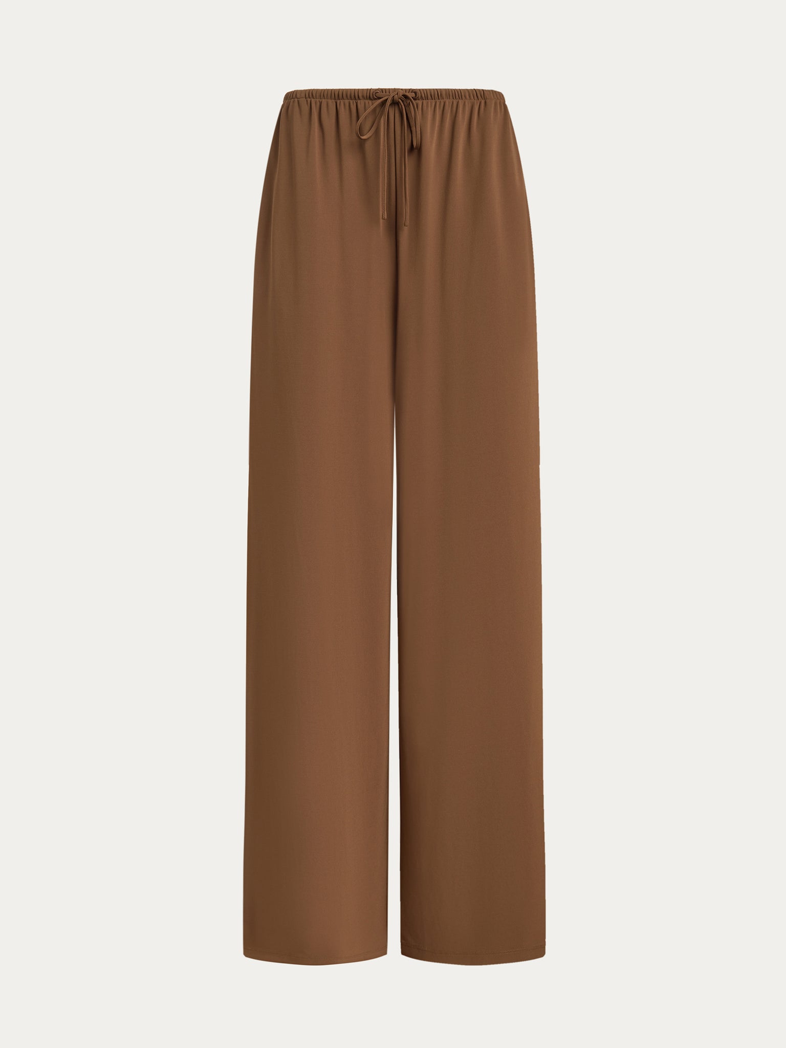 يُعتبر هذا البنطال إضافة كلاسيكية إلى خزانة ملابسك وقد صُمم بقصة واسعة عند الساقين ويتميز بحزام خصر مطاطي وقد صُمم بقصة مريحة وجيوب جانبية لطابع عملي. صُنع من فيسكوز الكريب ويتميز بكسرات عذبة عند الخصر للحفاظ على قصته المحددة.