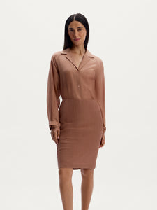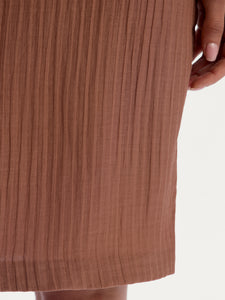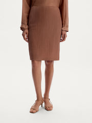 A lightweight midi for the summer, this skirt is crafted from a cotton-silk blend with a crinkled texture, reminiscent of ripples in the sand. It’s lined with airy silk chiffon for coverage and comfort, while the discreet side zip keeps the silhouette clean.