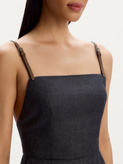 A refined hot-weather staple, this dress features a clean silhouette with an open back — perfect for summer occasions. Cut from lightweight yarn-dyed linen with a naturally faded, vintage look, it’s fully lined with cotton for comfort. Adjust the leather straps for your perfect fit and detach them before washing.