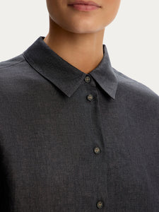 يُعتبر هذا القميص قطعة صيفية مصقولة وقد صُمم بقصة مريحة ويأتي بحافة خلفية وجوانب دائرية لسهولة التنسيق والارتداء. صُنع من الكتان خفيف الوزن الانسيابي والمغزول للتنعم بلون مشبّع وطابع كلاسيكي معتق.