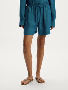يُعتبر هذا الشورت القصير قطعة أساسية للإطلالات الصيفية وهو مصنوع من الكتان جيد التهوية خفيف الوزن ويتميز بحزام خصر مطاطي لتعديل المقاس بكل مثالية. يتميز بجيوب جانبية عملية لحفظ المستلزمات الأساسية. يمكن تنسيقه مع القميص المطابق من مجموعتنا.