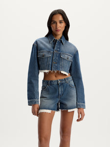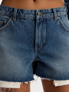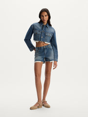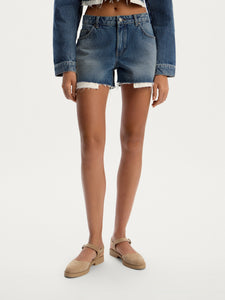 يُعتبر هذا الشورت خيارًا مثاليًا للإطلالات الصيفية، إذ يأتي بلون أزرق ناصع ممشط بشكل عذب لتعزيز طابعه المنعش. صُنع من الدنيم بوزن 13.5 أونصة ويأتي بنسيج تويل بارز ليحافظ على طابعه الجمالي مع مرور الوقت. يأتي بحواف غير مدروزة وبطانة عند الجيوب ويتسهلك مياه أقل بنسبة 17% وانبعاثات ثاني أكسيد الكربون بنسبة 53%. يأتي بقوام مريح للغاية.