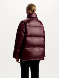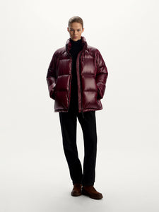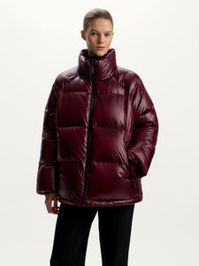 جاكيت متعدد الاستخدامات، يتميز بتصميم واسع وقشرة لامعة، تم تحقيقها من خلال معالجة خاصة حيث تذوب درجات الحرارة العالية قليلاً على السطح دون التأثير على المتانة. مبطن بالريش بقدرة 750.