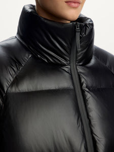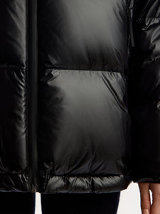 يمكن تنسيق هذا الجاكيت الواسع بطرق متعددة ويأتي بقماش عازل لامع من خلال عملية معالجة خاصة، ذوّبت خلالها درجات الحرارة المرتفعة السطح من خلال التأثير على المتانة. قد بُطّن بالزغب والريش بحشو 750.