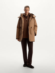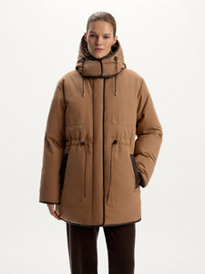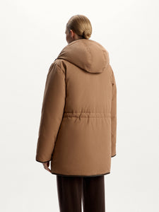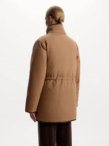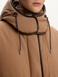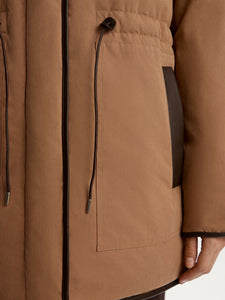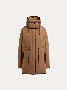 يتماشى معطف الباركا هذا مع إطلالاتك الرائعة المتنوعة، إذ يمكن إزالة غطاء الرأس لإطلالة رسمية أو شد رباط الخصر للمسة رياضية. صُنع من مزيج القطن والمخمل والقماش العازل من كوريا وهو مبطن بالزغب والريش بحشوة 700، ويأتي بتفاصيل جلدية.