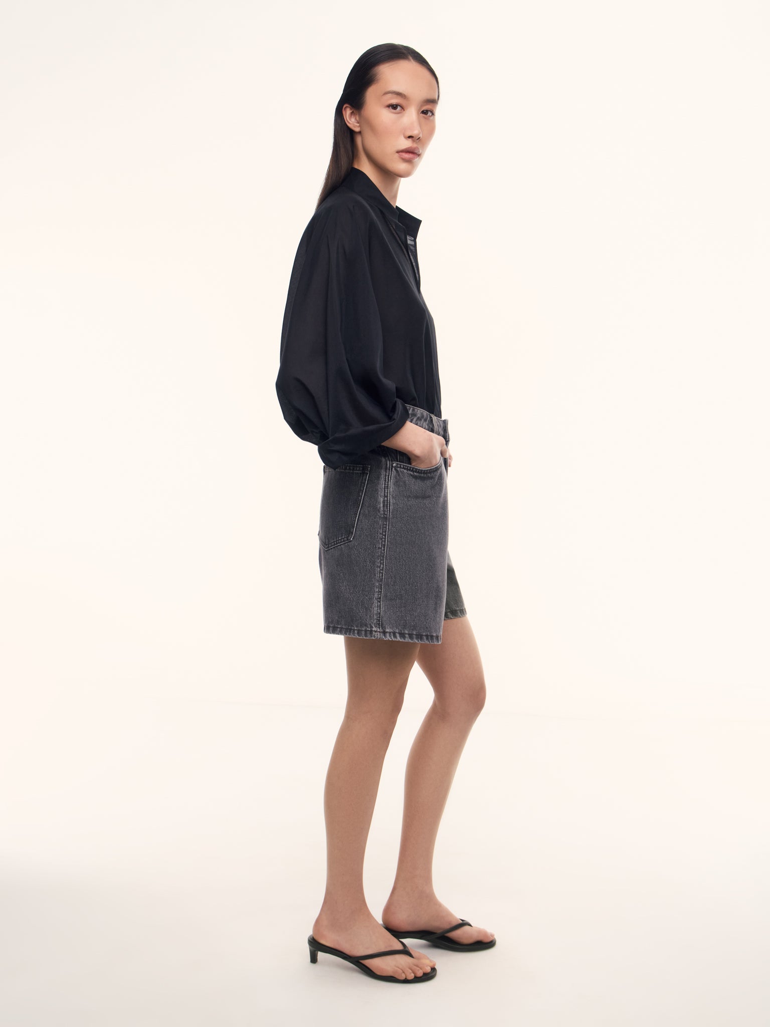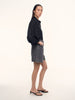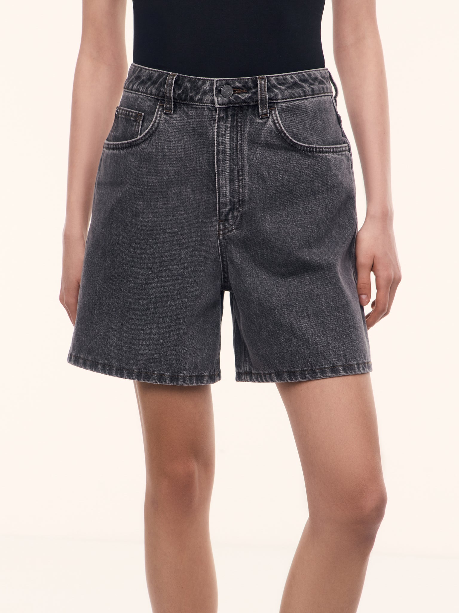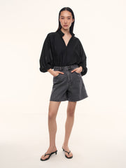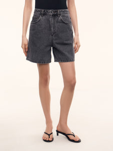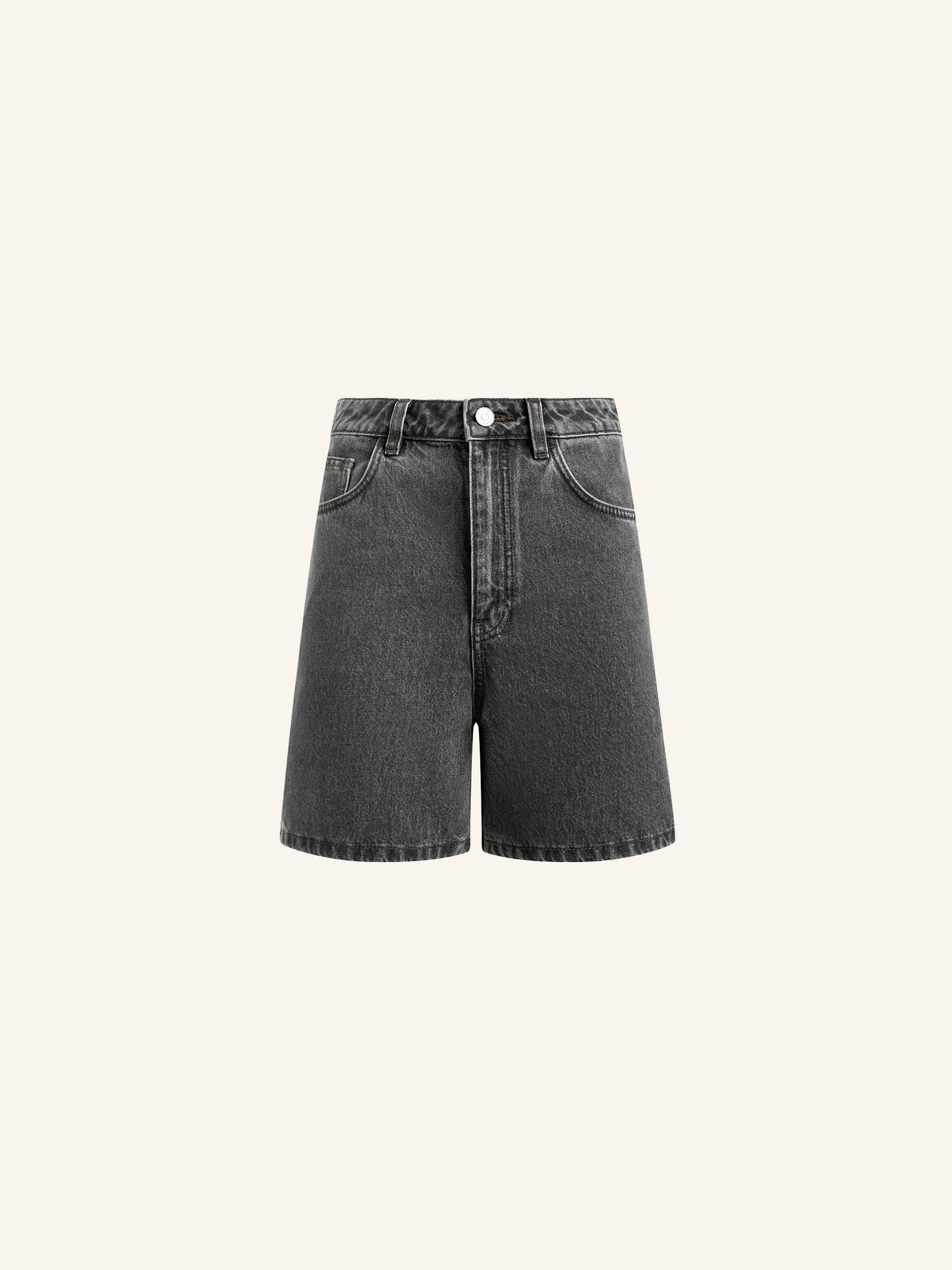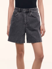 شورت من الدنيم بقصة واسعة تضيق تدريجيًا