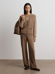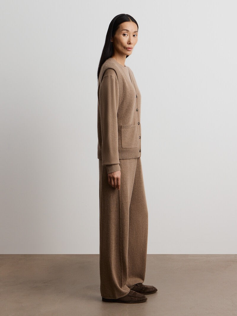 With a hint of vintage and a subtle masculine feel, this vest is knitted in two strands of soft Mongolian cashmere. The relaxed fit and warm, lightweight texture make it a comforting choice for cold days. Complete the set with the matching 12 STOREEZ trousers.