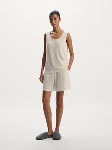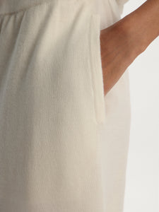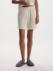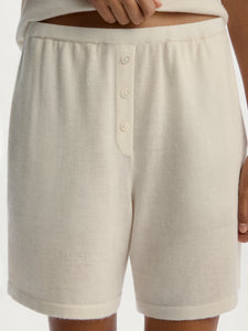 يدمج هذا الشورت ما بين الراحة والأناقة، ما يجعله رائعًا للعطلات والاسترخاء في المنزل وهو محبوك من مزيج خيط فاخر من صوف المارينو والكشمير، وقد صُمم بقصة مريحة ويأتي بخصر قابل للتمدد وأزرار من عرق اللؤلؤ. يتماشى بشكل رائع مع البلوزة المطابقة والكارديغان من مجموعتنا المنزلية.