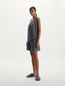 يدمج هذا الشورت ما بين الراحة والأناقة، ما يجعله رائعًا للعطلات والاسترخاء في المنزل وهو محبوك من مزيج خيط فاخر من صوف الميرينو والكشمير، وقد صُمم بقصة مريحة ويأتي بخصر قابل للتمدد وأزرار من عرق اللؤلؤ. يتماشى بشكل رائع مع البلوزة المطابقة والكارديغان من مجموعتنا المنزلية.