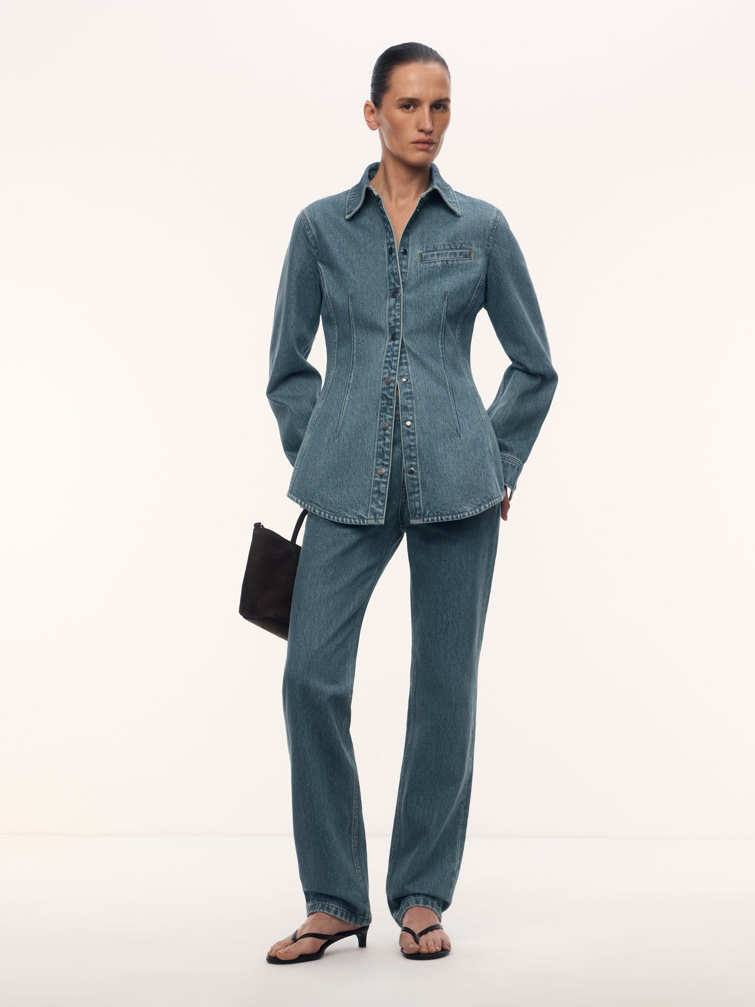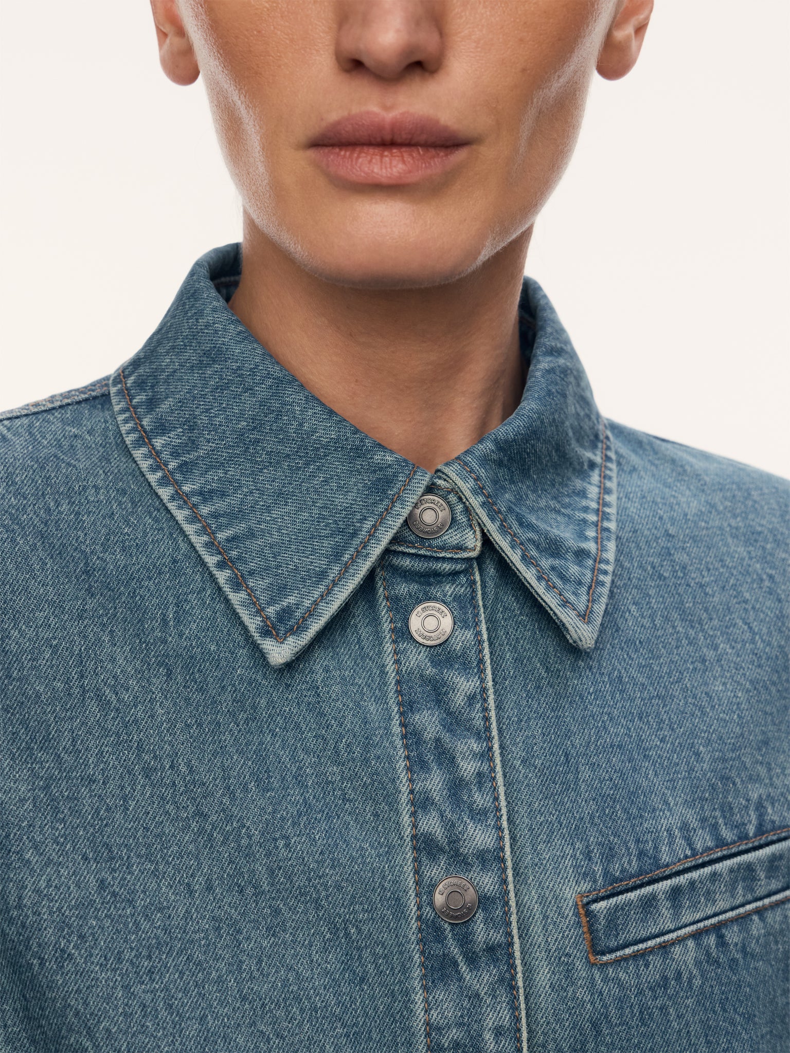 يُعتبر هذا القميص إضافة جديدة إلى المجموعة وهو مصنوع من دنيم مستحصل في أحد المصانع الرائدة في الصين التي تتعاون مع علامة ليفيز وكالفن كلاين وجي ستار. يأتي من الدنيم بوزن 14.5 أونصة ليحافظ على شكله المحدد، ما يجعله سهل التنسيق فوق البلوزة بدون أكمام والبلوزة على حد سواء. يُغلق بأزرار كباسة مزدانة بشعار 12STOREEZ.