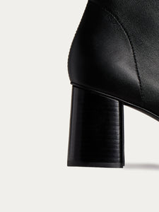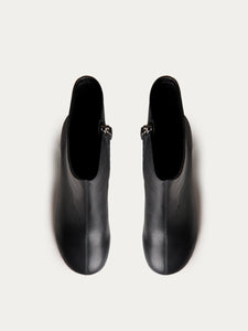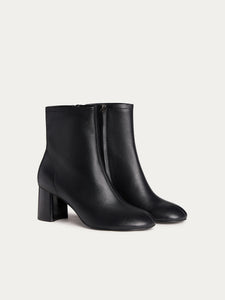 صُمم حذاء البوت هذا بطول الكاحل وبطابع أنيق وكعب سميك بطول 65 مم ومقدمة دائرية مريحة وقصة محددة الشكل ومصقولة. صُنع من الجلد المطاطي بلون يسهل تنسيقه بأكثر من طريقة ويتماشى للغاية مع جميع الإطلالات ويُغلق بسحاب لسهولة الانتعال والخلع.