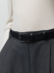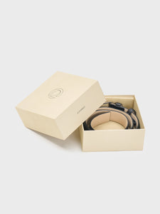 صُنع هذا الحزام من الجلد المحبب ويتميز بتصميم سهل التنسيق بأكثر من طريقة ويأتي بعرض 30 ملم ليتماشى مع جميع الإطلالات، من البناطيل إلى الفساتين. لا نعتمد تقنيات المعالجة بالسيليكون والمواد المثبتة للألوان للحفاظ على القوام الناعم للخامة. يأتي ببطانة فاتحة اللون لعدم تركها أثر على الملابس. يُباع داخل العلبة المزينة بشعار العلامة الشهير.
