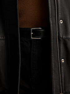 يُعتبر هذا الحزام قطعة إكسسوار متعددة الاستخدامات وهو مصنوع من الجلد الأملس المدروز طوال الحواف لتعزيز المتانة. يأتي ببطانة فاتحة اللون فلا يترك أثرًا على الملابس، ويتميز بعرض 35 ملم ليتماشى مع جميع بناطيل الجينز. يمكن إزالة الحلقات عند الحاجة.