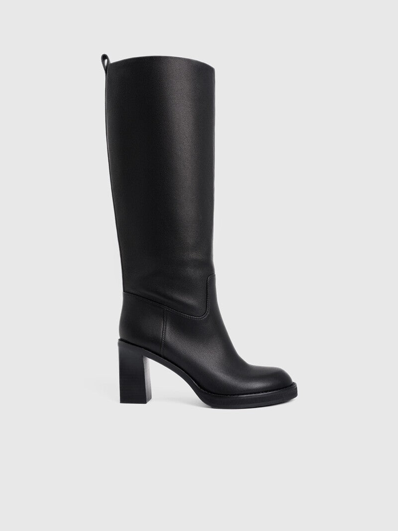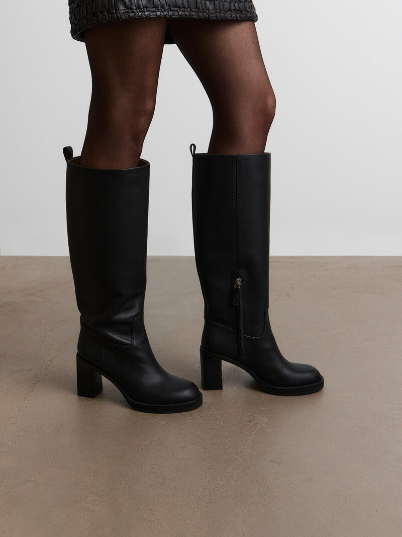 - Heeled knee-high boots crafted from smooth leather — a new addition to the 12 STOREEZ collection