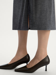يأتي حذاء البامب الكلاسيكي هذا بلون يسهل تنسيقه بأكثر من طريقة وهو مصنوع من الجلد الأنيق ويتميز ببطانة من جلد شيفرو وهو مريح للمشي. صُمم بمقدمة مدببة أنيقة وفتحات مربعة لإطلالات العمل والأمسيات الأخرى.