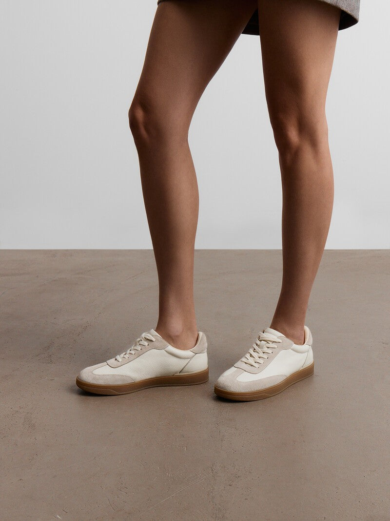 صُنع حذاء السنيكرز هذا من الجلد المرن وخفيف الوزن ويُعتبر قطعة أساسية للإطلالات اليومية. يتميز بقطع قماشية من جلد السويد لطابع رياضي مميز، ويأتي بنعل مطاطي وبطانة جيدة التهوية لتعزيز الراحة طيلة النهار والليل.