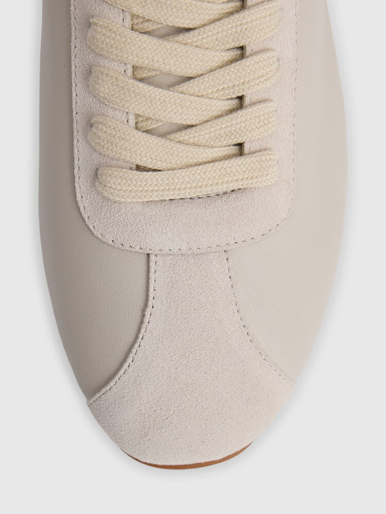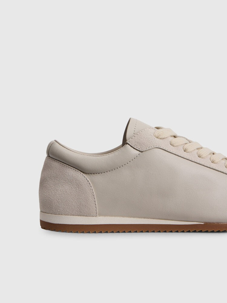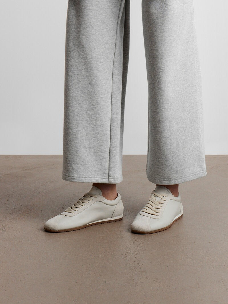 يُعتبر حذاء السنيكرز هذا إضافة جديدة إلى تشكيلة أحذيتنا ويأتي بطابع مينيمالي وهو مصنوع من جلد الشيفرو الناعم ويتميز بزخارف من جلد السويد لتعزيز القوام البارز. يُعتبر خيارًا مريحًا يضاهي راحة أحذية السليبرز الباليه، بفضل قوامه الأملس وخفيف الوزن. يتميز بنعل مرن من المطاط وفوم إيفا لتعزيز الراحة طيلة اليوم، ما يجعله خيارًا مثاليًا للمهام اليومية والشاطئ والتجوال.
