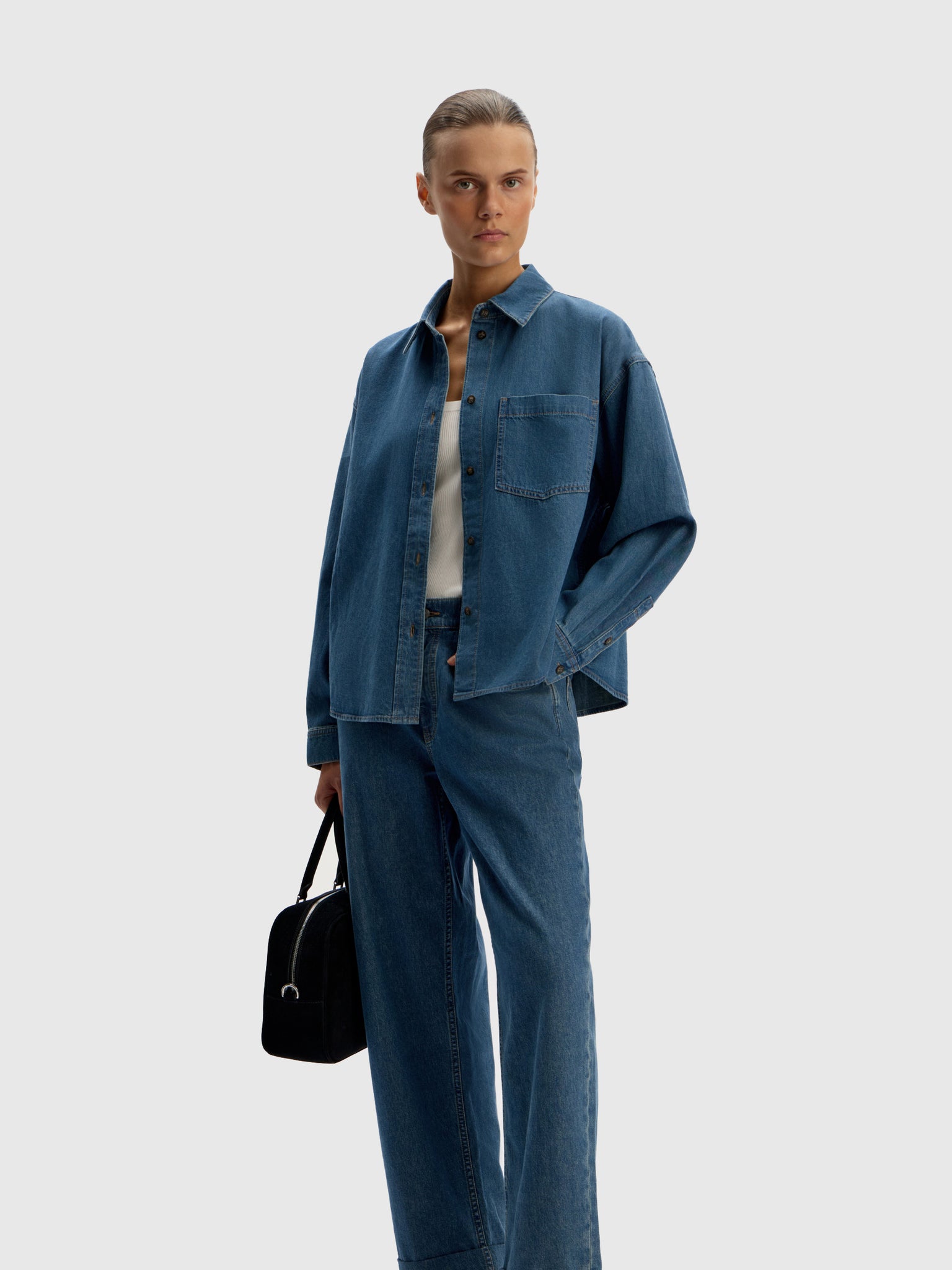 A heat-proof take on classic denim, this shirt is crafted from 8 oz cotton that feels soft and lightweight against the skin. The relaxed, slightly cropped fit easily layers over T-shirts and tanks or tucks in for a neat look. Complete the set with the matching 12 STOREEZ jeans.