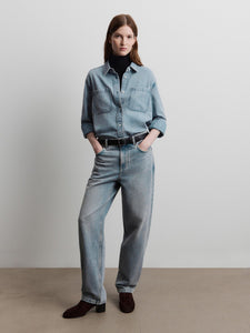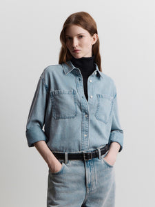يُعتبر هذا القميص قطعة كلاسيكية وهو مصنوع من مزيج اللايوسيل والقطن الناعم بوزن 7.2 أونصة للتنعم بالدفء والنعومة للإطلالات اليومية. يأتي بلون أزرق فاتح يسهل تنسيقه بأكثر من طريقة مع بناطيل الجينز والقطع الأخرى في خزانة الملابس.