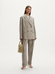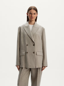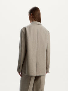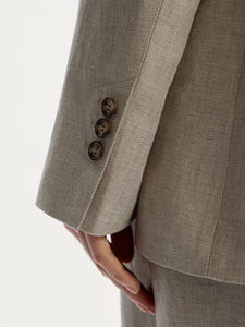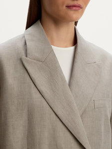 يُعتبر هذا البليزر قطعة مريحة للإطلالات الصيفية وهو مصنوع من الكتان الناعم والكثيف ويأتي بلون أسود يسهل تنسيقه بأكثر من طريقة. يتميز ببطانة جيدة التهوية من القطن والفيسكوز وبحواف متباينة لطابع مصقول. يمكن تنسيقه فوق الفساتين الصيفية أو مع بنطال مطابق من المجموعة.