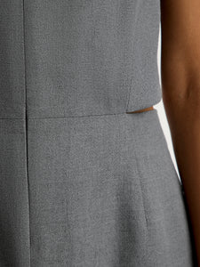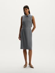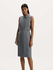 يُعتبر هذا الفستان متوسط الطول قطعة كلاسيكية أنيقة للإطلالات الصيفية ويتميز بطابع مصقول من الأمام، أما من الخلف فيحاكي قوام البلوزة والتنورة. صُنع من مزيج جيد التهوية من الكتان والبوليستر والفيسكوز للتنعم بالانتعاش طيلة الأيام الحارة. يأتي بكسرات طفيفة لملمس وقوام ناعم.