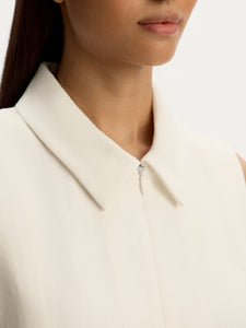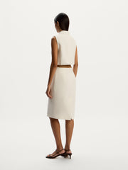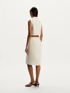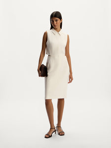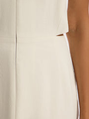 يُعتبر هذا الفستان متوسط الطول قطعة كلاسيكية أنيقة للإطلالات الصيفية ويتميز بطابع مصقول من الأمام، أما من الخلف فيحاكي قوام البلوزة والتنورة. صُنع من مزيج جيد التهوية من الكتان والبوليستر والفيسكوز للتنعم بالانتعاش طيلة الأيام الحارة. يأتي بكسرات طفيفة لملمس وقوام ناعم.