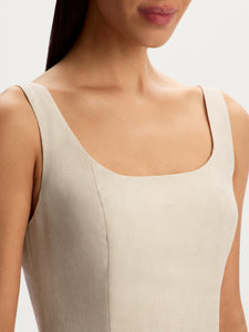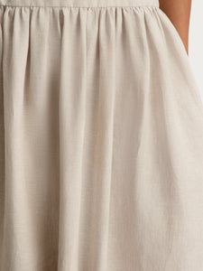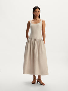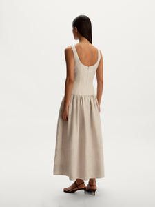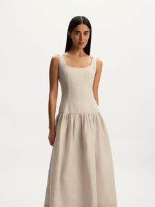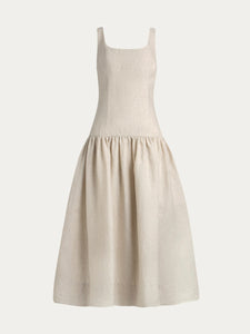 يُعتبر هذا الفستان من الأكثر مبيعًا لإطلالاتنا الصيفية وقد صُمم بخصر منخفض وتنورة متوسطة الطول وفضفاضة. يأتي بياقة مربعة الشكل وتصميم ضيق مدعم عند الصدر وطابع انسيابي لتعزيز قوامه الأنثوي. صُنع من الكتان خفيف الوزن ويأتي ببطانة من القطن لتعزيز الراحة.