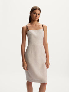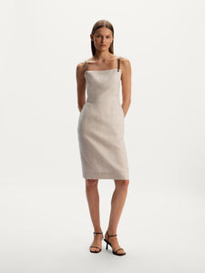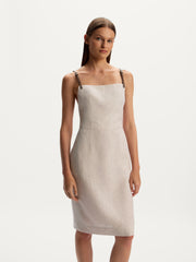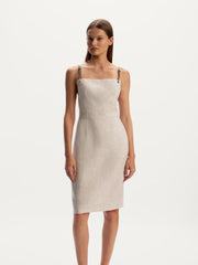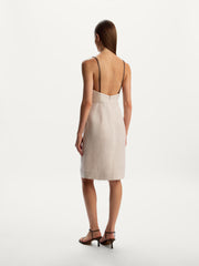 يُعتبر هذا الفستان قطعة مصقولة للإطلالات الصيفية وقد صُمم بقصة أنيقة وظهر مكشوف، ما يجعلها رائعًا للأيام الحارة. صُنع من الكتان الانسيابي وخفيف الوزن ويأتي ببطانة مريحة من القطن. يمكن تعديل الحمالات الجلدية وإزالتها قبل الغسيل.