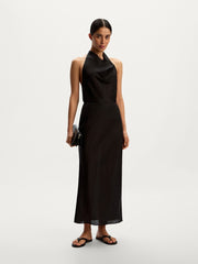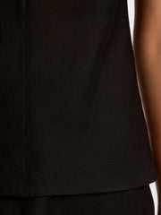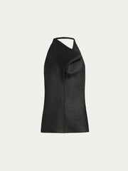 تُعتبر هذه البلوزة قطعة صيفية بامتياز وقد صُممت بياقة هالتر الدائرية وهي مصنوعة من الكتان وتأتي بتصميم شبه مائل لتنسدل بكل روعة وتعانق منحنيات جسمك بكل أناقة. تأتي بتصميم مكشوف من الخلف للإطلالات المسائية والنهارية على حد سواء. يمكن تنسيقها مع التنورة المطابقة من المجموعة.