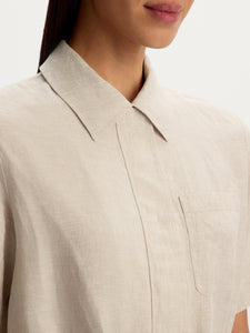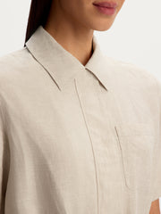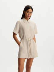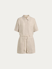 A versatile mini jumpsuit crafted from soft pearl-toned linen — perfect for days when you want to feel both comfortable and put-together. Designed with a back pleat for added volume, it gently defines the waist with an adjustable drawstring.