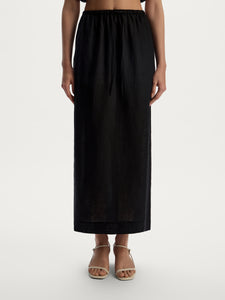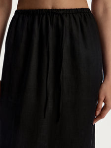 A relaxed summer essential, this midi skirt is crafted from airy linen with a flowing, straight silhouette. Side pockets add a practical touch, while the elasticated waistband with an adjustable drawstring ensures a comfortable fit. Complete the set with the matching 12 STOREEZ top.