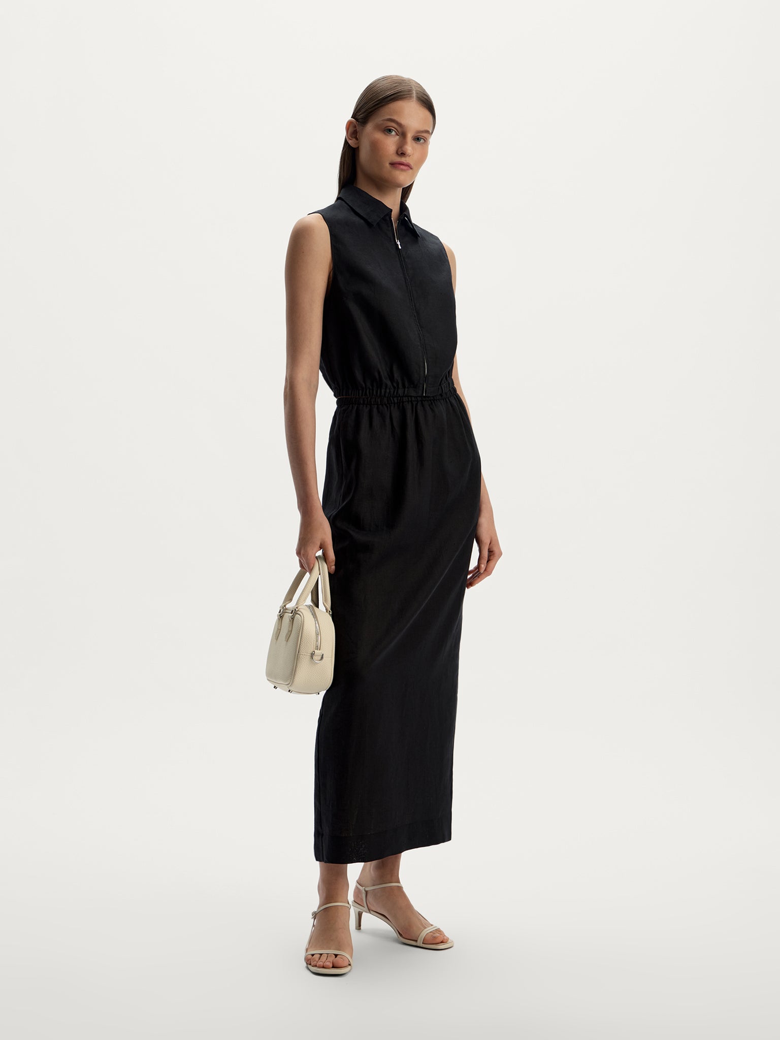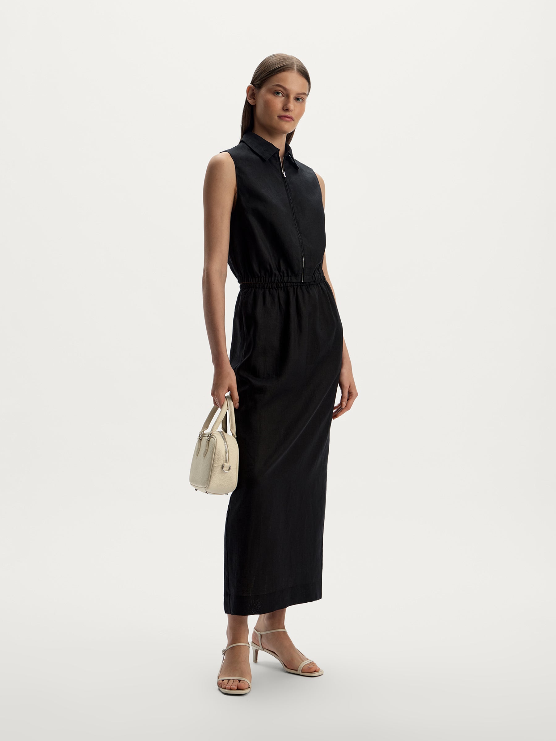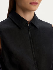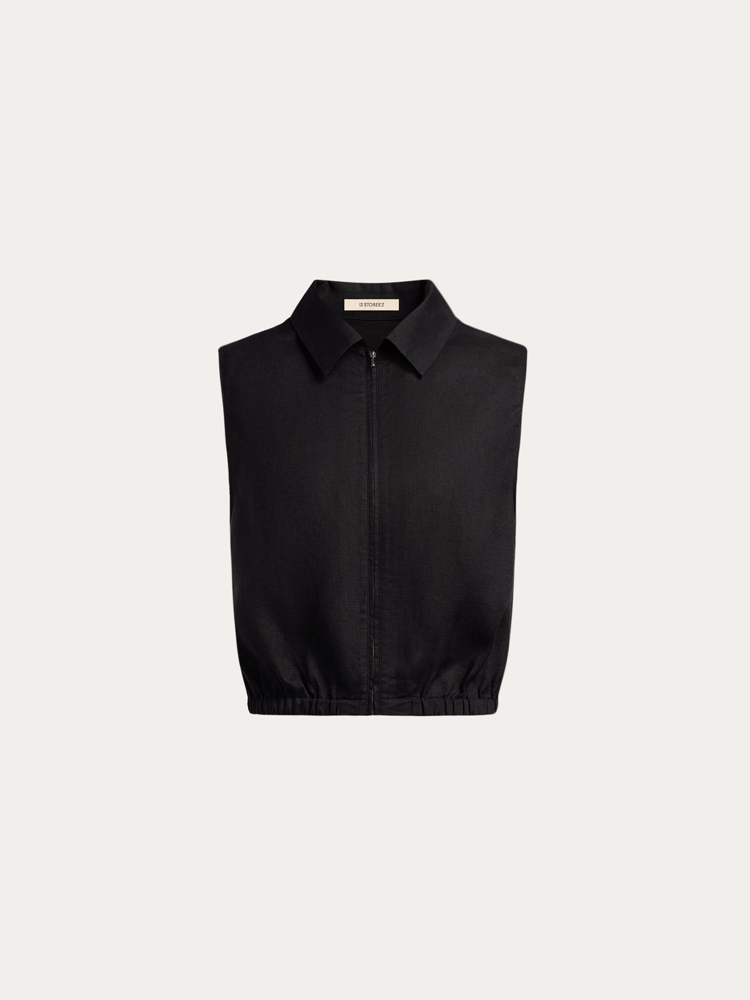 Light and effortless, this sleeveless linen top features a clean, structured shape that makes it easy to style. The metal zip adds a contemporary touch, while the fabric keeps you comfortable on warm days. Complete the set with the matching 12 STOREEZ skirt.