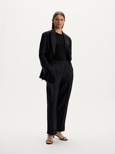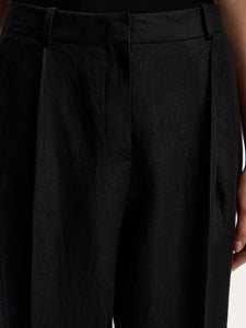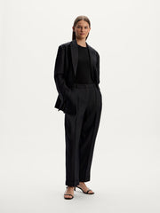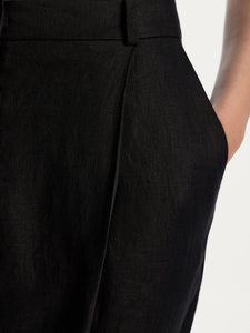 يُعتبر هذا البنطال من القطع الأكثر مبيعًا لدى 12STOREEZ وقد صُمم بقصة تضيق تدريجيًا عند الساقين ويأتي بكسرات حادة وحواف مطوية لسهولة التنسيق عند إطلالات العمل والأمسيات. صُنع من الكتان بلون أسود ليتماشى مع مختلف القطع. يمكن تنسيقه مع البنطال المطابق من المجموعة لإطلالة متكاملة.