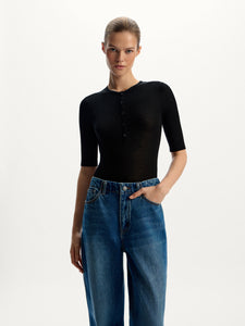 يُعتبر هذا البودي سوت قطعة مريحة لخزانة ملابسك الشتوية وهو مصنوع من مزيج اللايوسيل والصوف والإيلاستين ليعانق منحنيات جسمك بكل روعة ويتميز بقوام دافئ للغاية. يأتي بياقة عالية بنمط هنلي لسهولة التنسيق أسفل البليزرات والكنزات.
