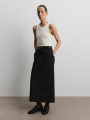 تُعتبر هذه البلوزة بدون أكمام قطعة أساسية لجميع مواسم السنة وهي مصنوعة من جيرسي لايوسيل الناعم وتتميز بلمسة من الصوف الدافئ. تأتي بحبكة مضلعة لتحافظ على شكلها وتعانق منحنيات جسمها بكل روعة. تتميز بتصميم طويل لسهولة التنسيق لإطلالة غير رسمية.